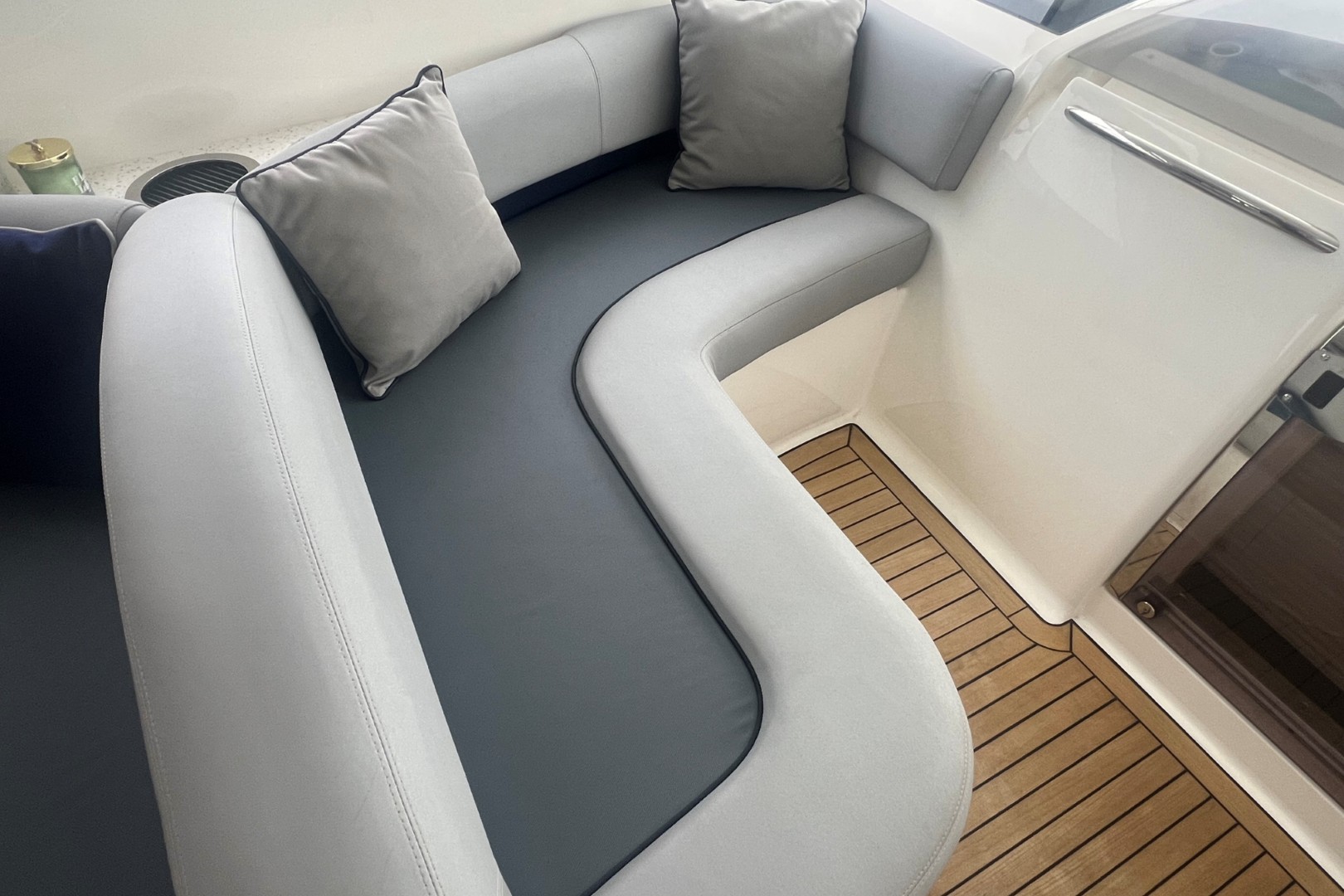 'Reticulated' non-absorbent foam cushions for forward and aft sundeck