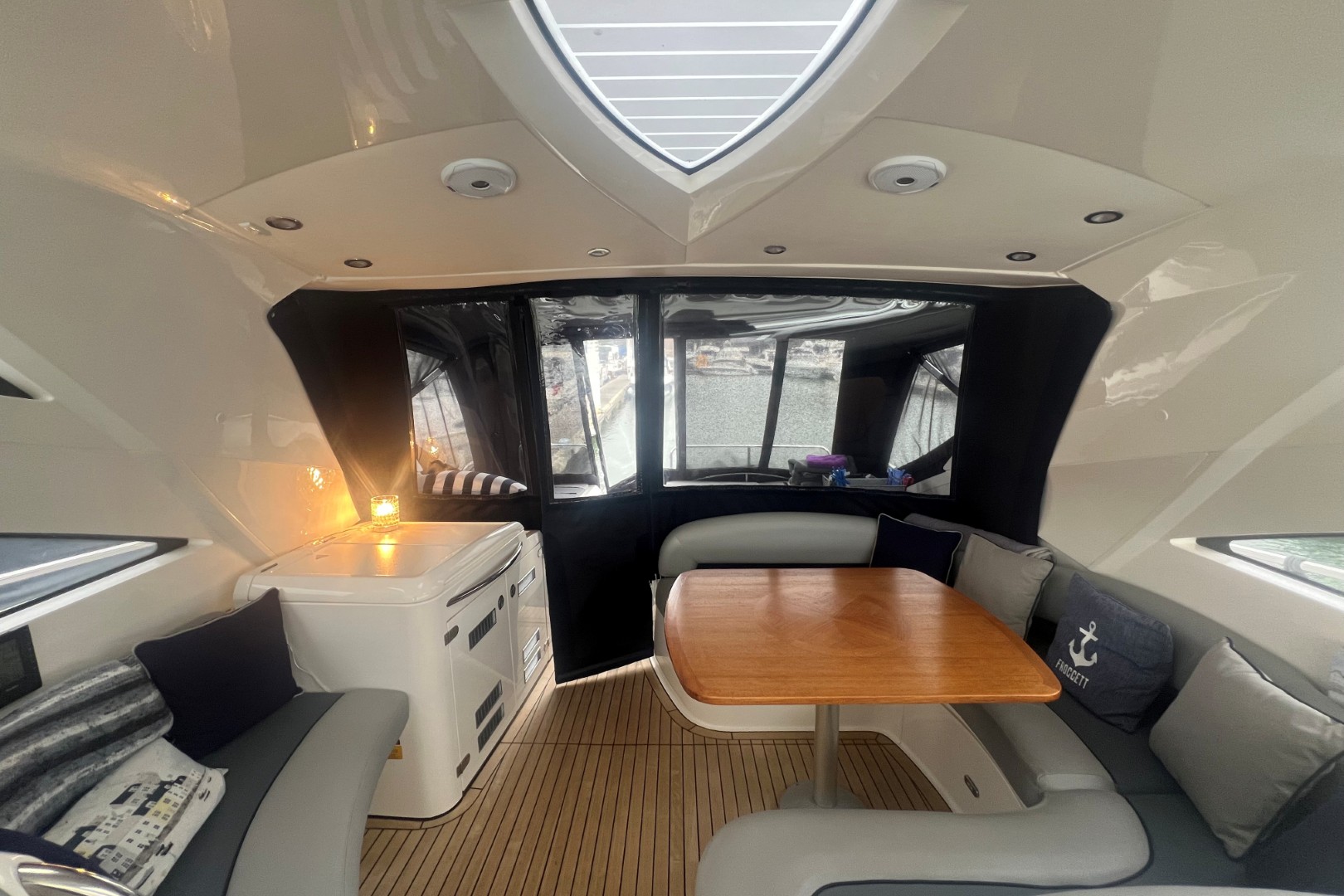Cockpit bar with refrigerator, sink, hot and cold water, insulated coolbox