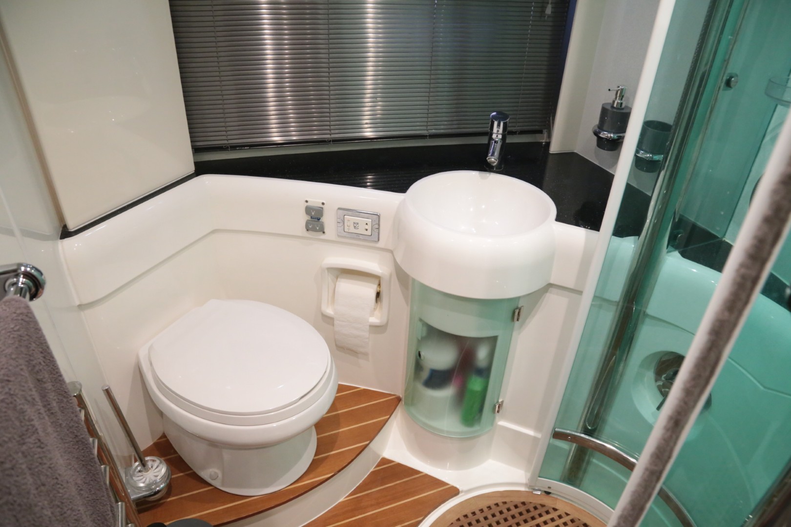 The integral bathing platform gives the boat a longer waterline length for improved performance, particularly at reduced power settings