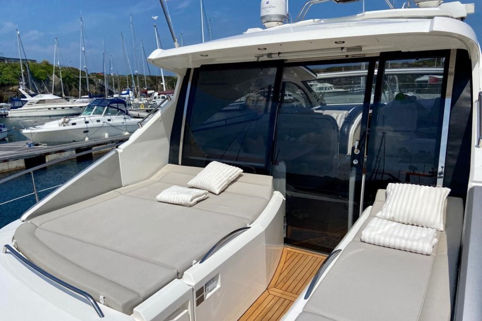 Non-absorbent foam cushions for port and starboard aft sundecks