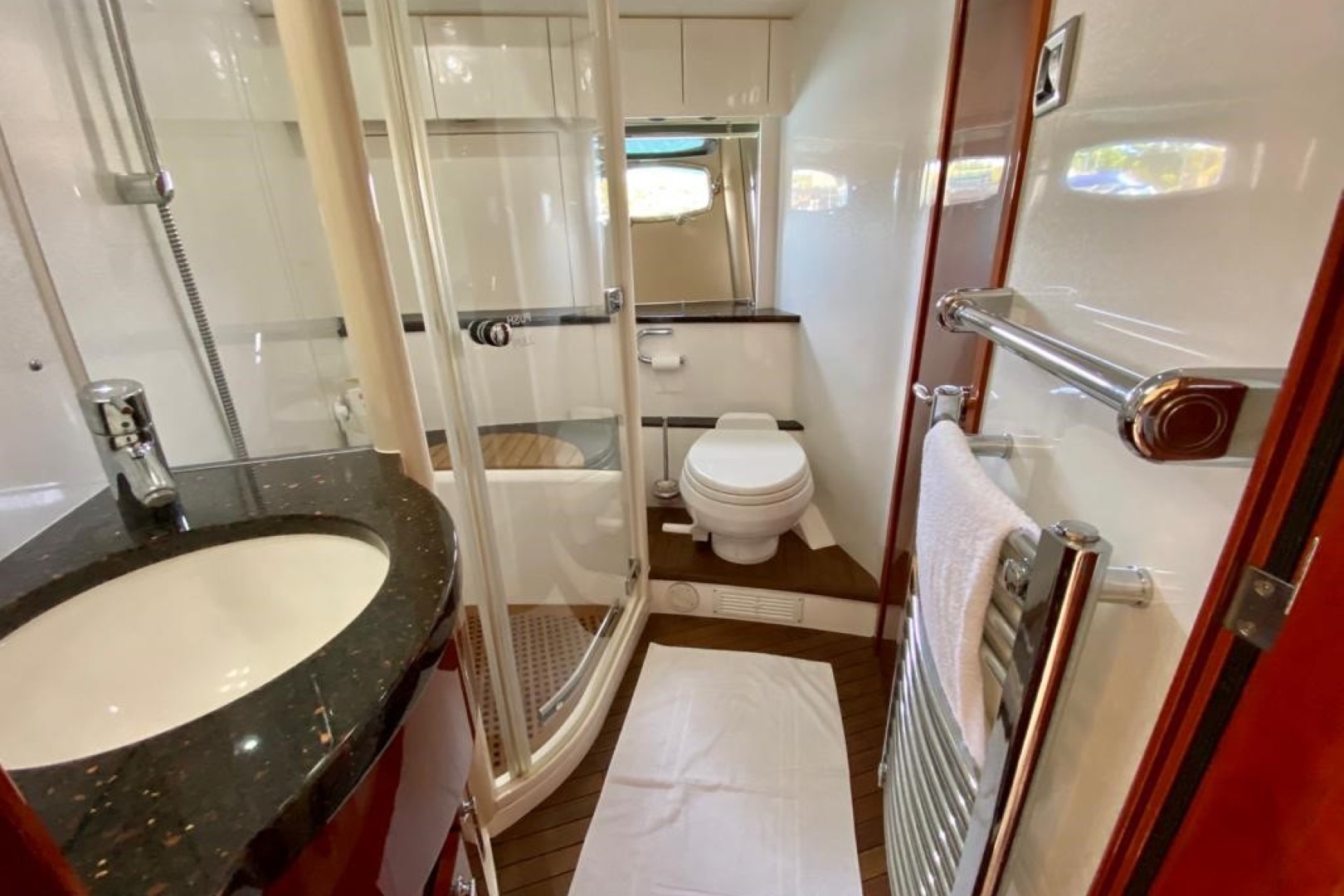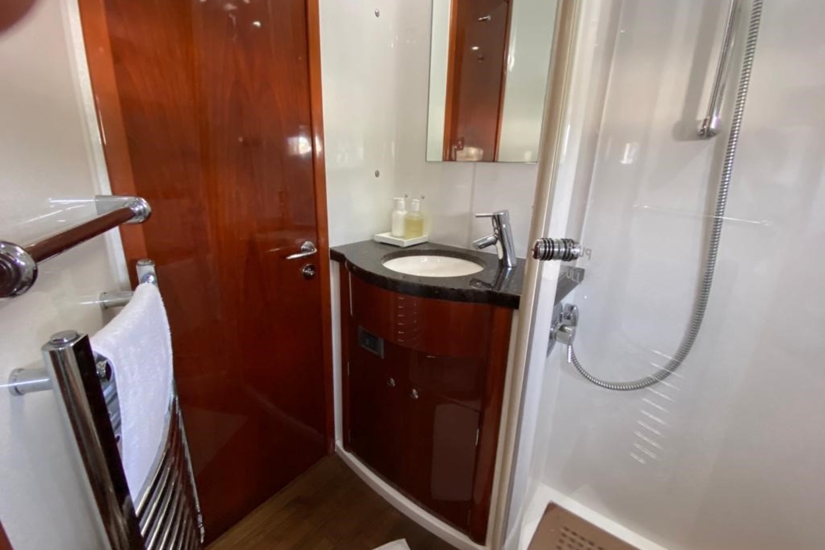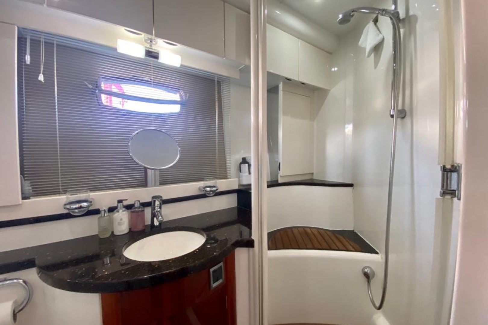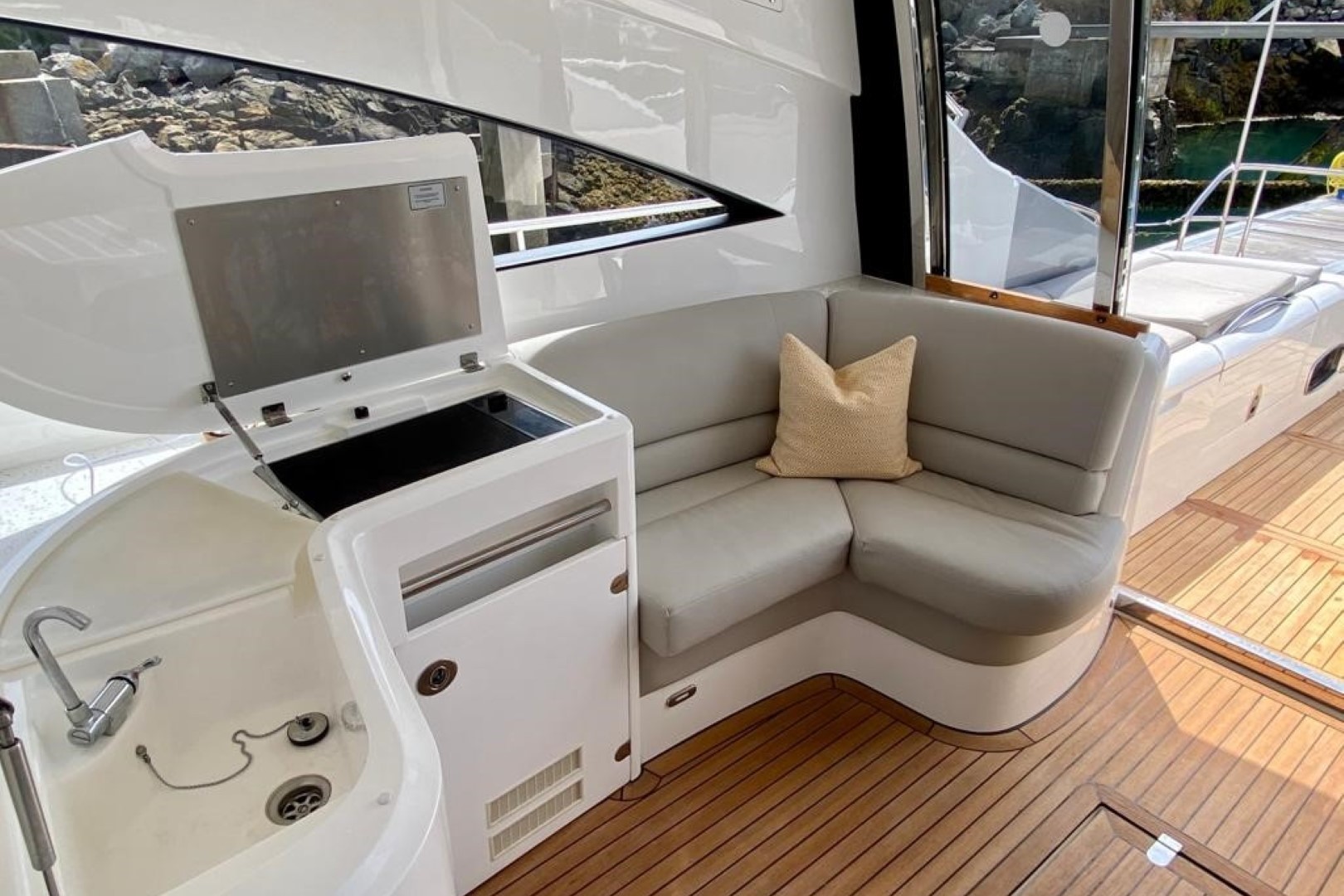 Full cockpit galley area including griddle, fridge, icemaker, coolbox, sink and waste bin