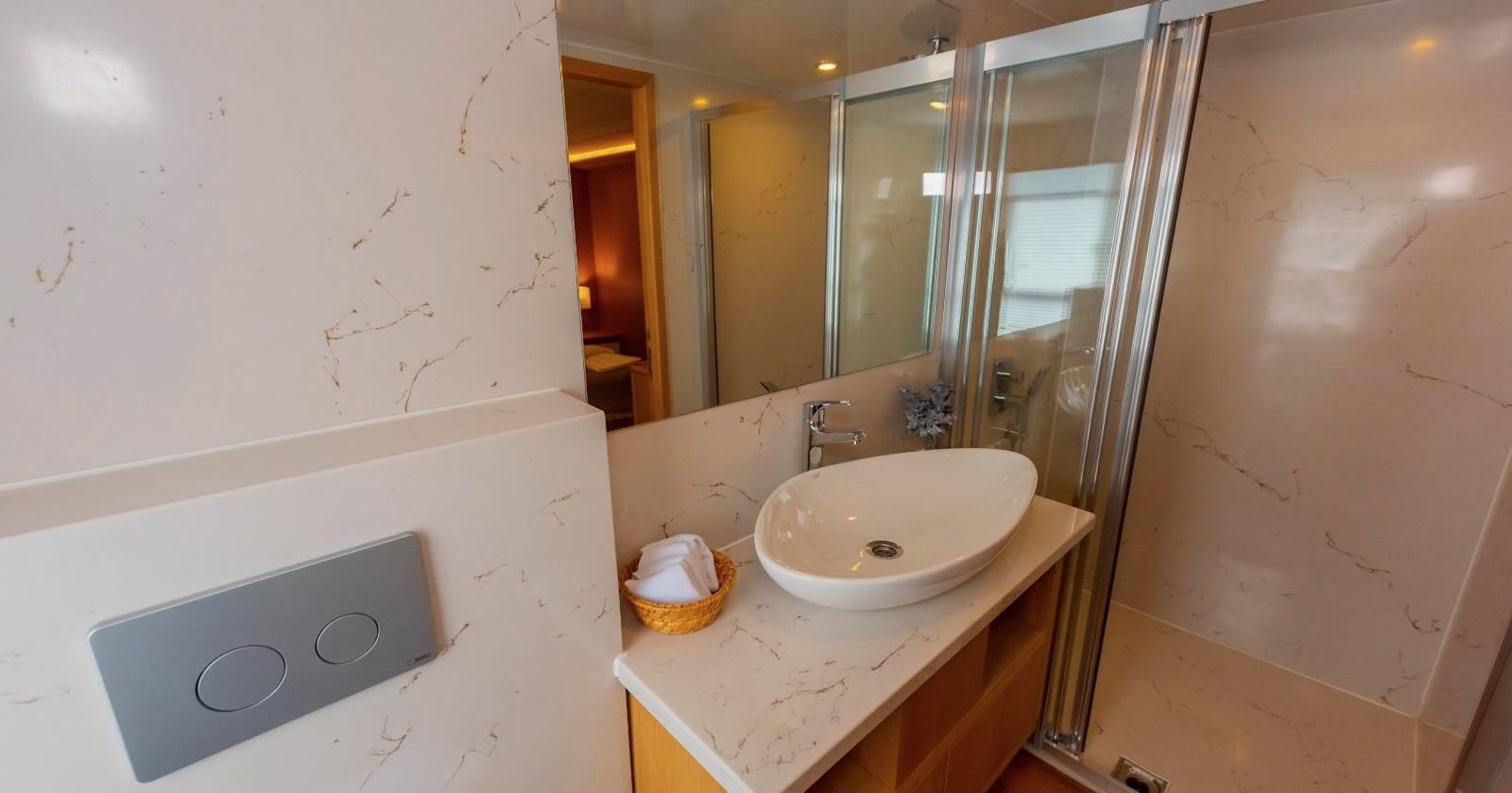 Idéal pour un usage privé haut de gamme ou une exploitation charter, ce yacht accueille 10 passagers dans 5 cabines doubles, toutes équipées de leur salle de bain et WC privatifs, avec des espaces de vie spacieux, lumineux et parfaitement aménagés.