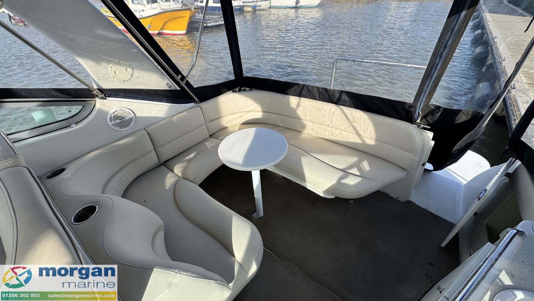 Just arrived at Morgan Marine, this 2001 Four Winns 298 Vista is powered by twin Volvo Penta 4.3 V6 250hp inboard petrol engines with reliable stern drives. She has been lovingly cared for by her current owner and has been used exclusively on freshwater since new, helping to preserve her excellent overall condition. This model boasts an innovative lounge, a uniquely sculpted aft cockpit, and a built-in entertainment centre, making her ideal for relaxing or socialising on the water. The cockpit canopy was replaced three years ago, and the upholstery to both the upper and lower decks has been recently renewed, giving the boat a fresh and well-presented appearance throughout. Inside, the cabin offers comfortable and gracious accommodation with two double berths and a dinette that converts into a large single berth. A spacious side galley and generous cockpit seating make her perfectly suited for weekend cruising or longer stays aboard. With a good service history and an impressive specification, this is a fantastic opportunity to own a well-maintained and versatile cruiser. Early viewing is highly recommended!
