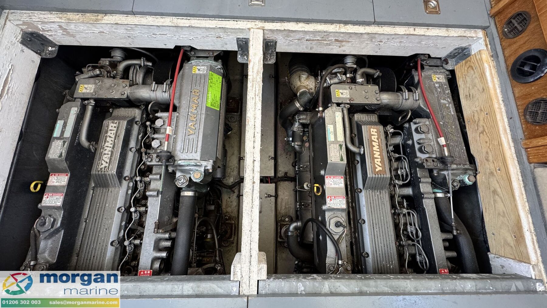 Machinery: Twin Yanmar 6LP-DTE 250HP diesel shaft drive engines. Bow and stern thruster. Twin fuel tank capacity - 436 Litres. Holding tank capacity - 218 Litres. Water tank capacity - 336 Litres.