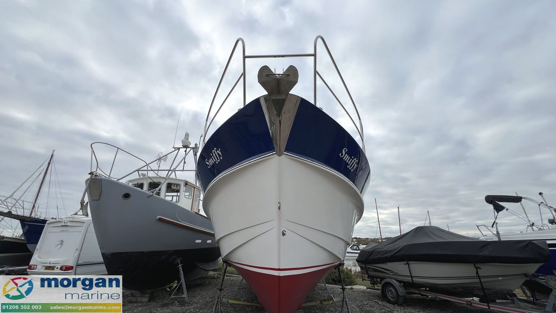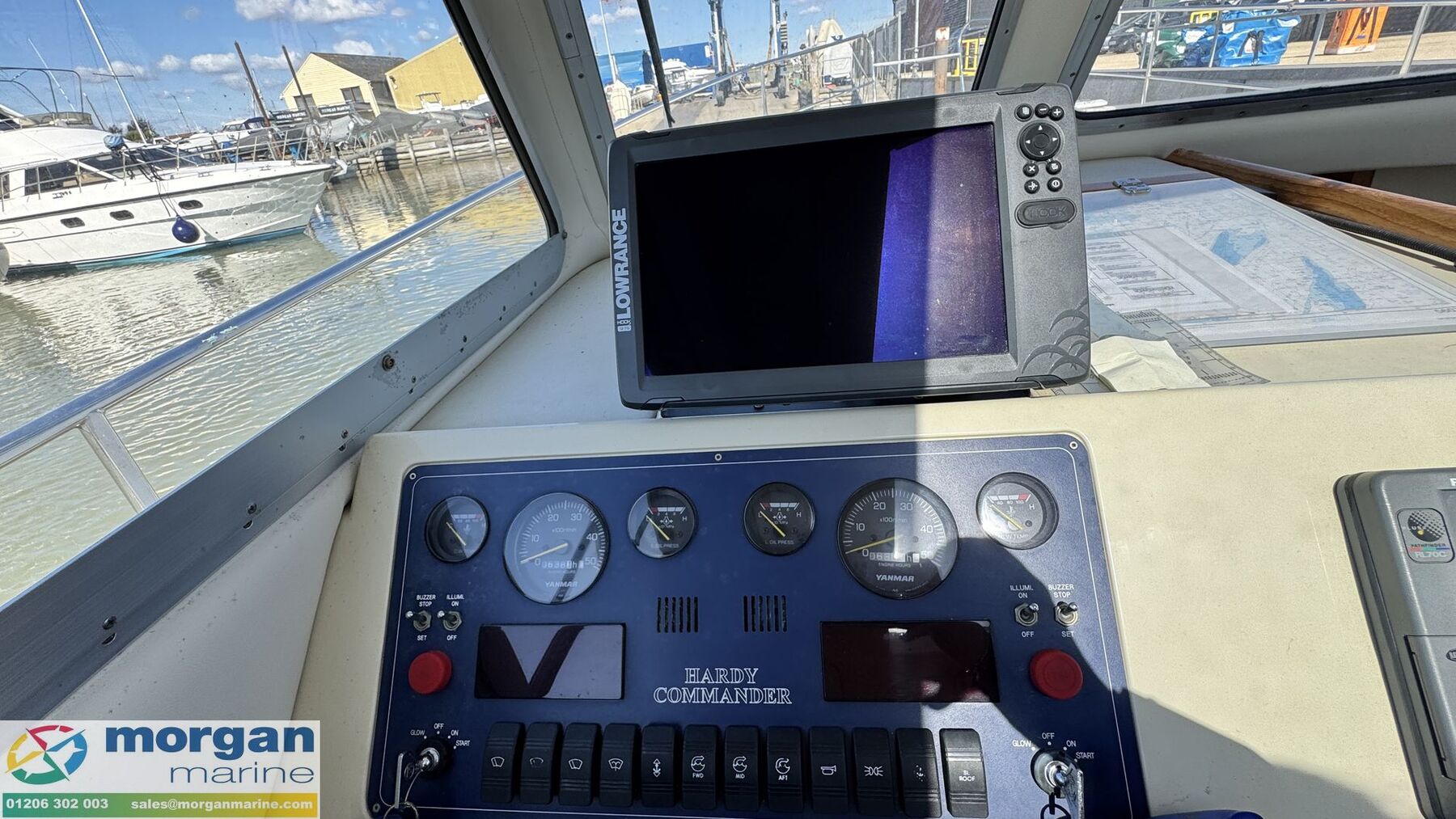 2002 Hardy 32 Commander has just arrived at Morgan Marine. A rare opportunity to own a British-built classic. Hardy boats are renowned for their exceptional build quality, impressive power, and remarkable sea-keeping ability, and this model is no exception. Powered by twin Yanmar 6LP-DTE 250HP diesel shaft-drive engines with only 638 hours! She delivers outstanding performance with a top speed of 24 knots and an effortless cruising speed between 18 and 20 knots, making her an ideal choice for days on the water with family and friends. Step inside and you’ll immediately notice how spacious she feels for a 32-foot boat. The saloon is bathed in natural light thanks to the panoramic windows and full-width sunroof, creating an open, inviting atmosphere. Smiffy comes exceptionally well equipped, featuring a Lowrance 12-inch Hook chartplotter, Raymarine RL70C chart plotter, Raymarine RAY230E VHF, electric windlass, a generous saloon with comfortable berths, large galley, a fully enclosed canopy, and abundant storage throughout. Recently re-antifouled in October 2025! This is a superbly presented vessel that truly has it all. Contact Morgan Marine today to arrange an early viewing before she’s gone.