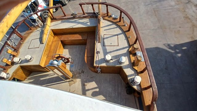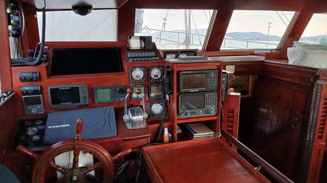 • Timonera y Cabina: Reconstruidas con revestimiento de madera Guatambu (10 mm) de Sudamérica. La timonera tiene cristales anti-intrusión.