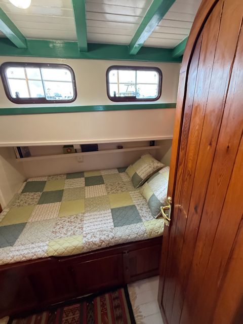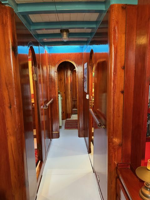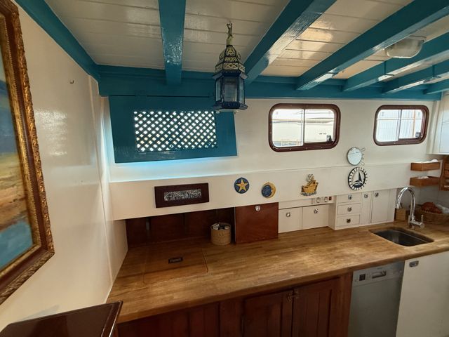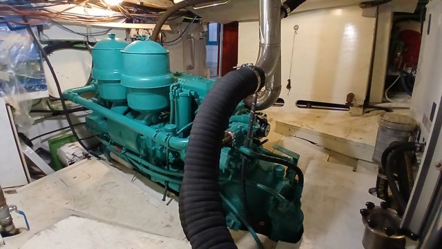 Le moteur, un GM Detroit 6 cylindre 2 temps diesel, très solide et économique, a été totalement reconstruit à neuf. C'est une "maison" sur l'eau avec tous les équipements de navigation hauturière.