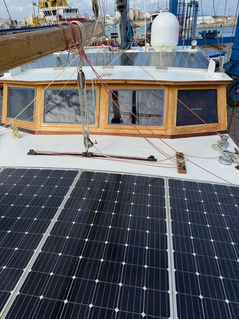 • Equipamiento Eléctrico: 8 paneles solares de 345Wc (24V), controladores, armarios, transformador de aislamiento Victron, baterías, cargadores 12V/24V, winches eléctricos, bombas 24V, electrónica, radar, antenas Wi-Fi/TDT, GMDSS — todo nuevo.