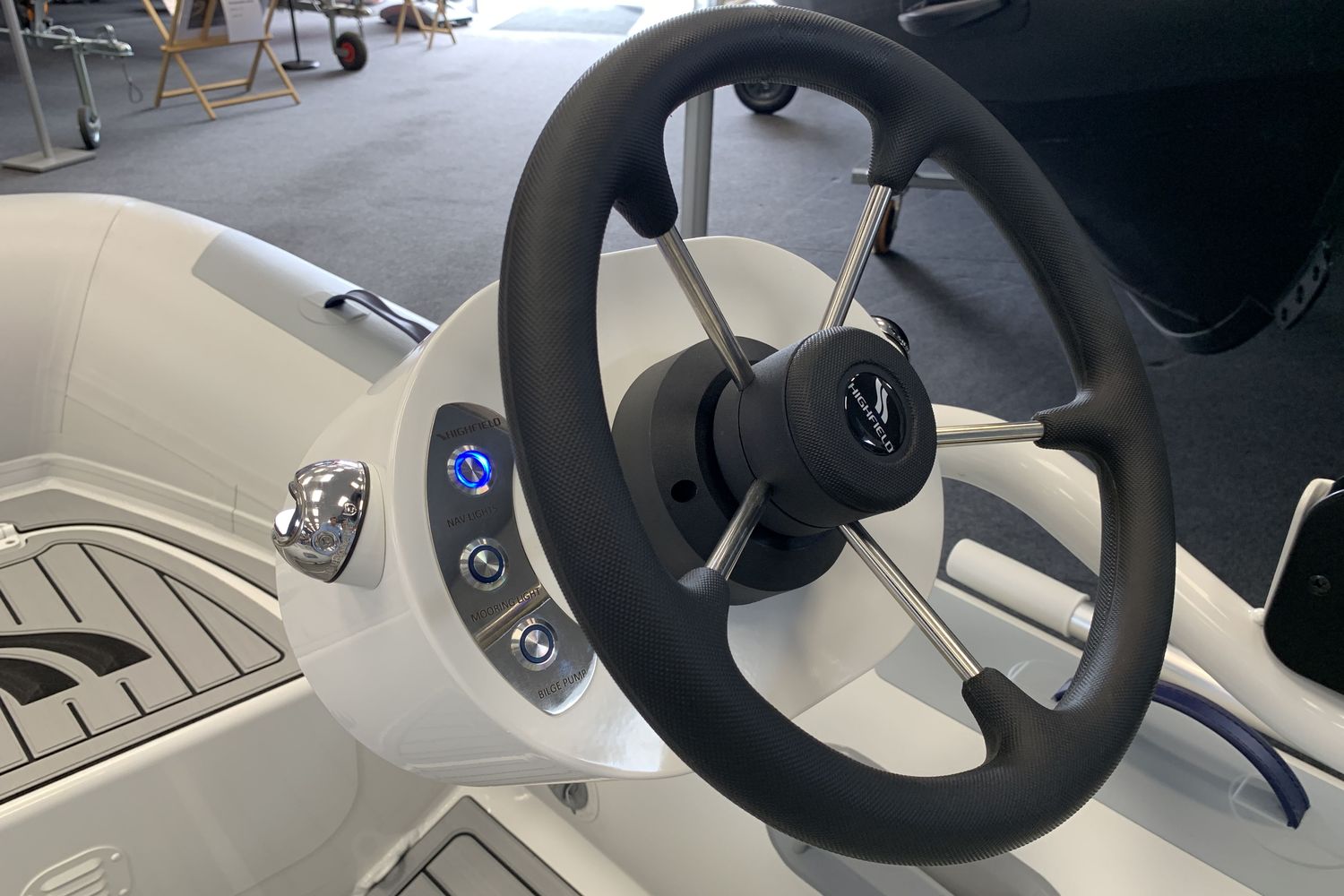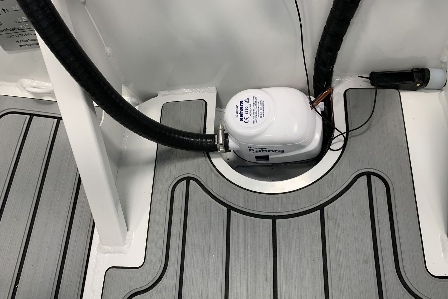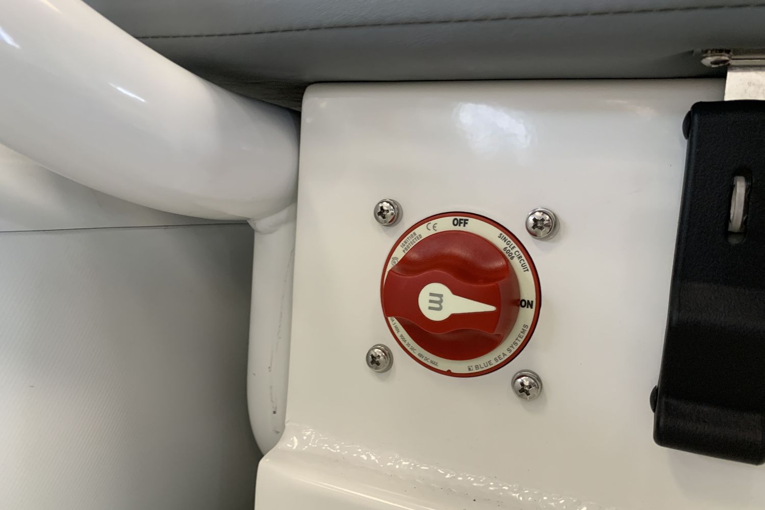 Electronics: The console helm is an open style design giving you unprecedented legroom in a boat of its size while flush mounted LED switches and branded steering wheel add a dash of style. Electronics include: navigation lights. anchor light and bilge pump. Battery + battery box.