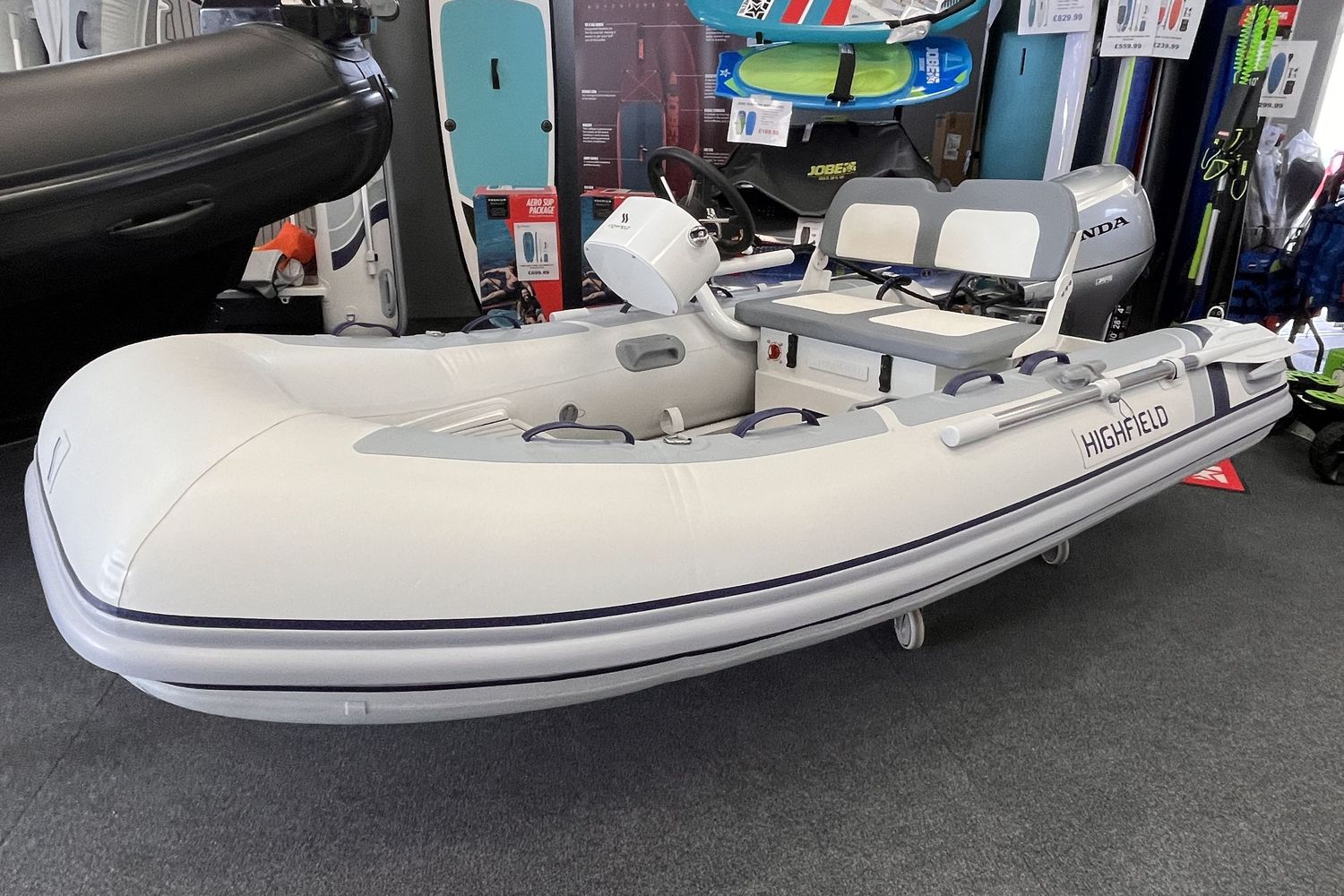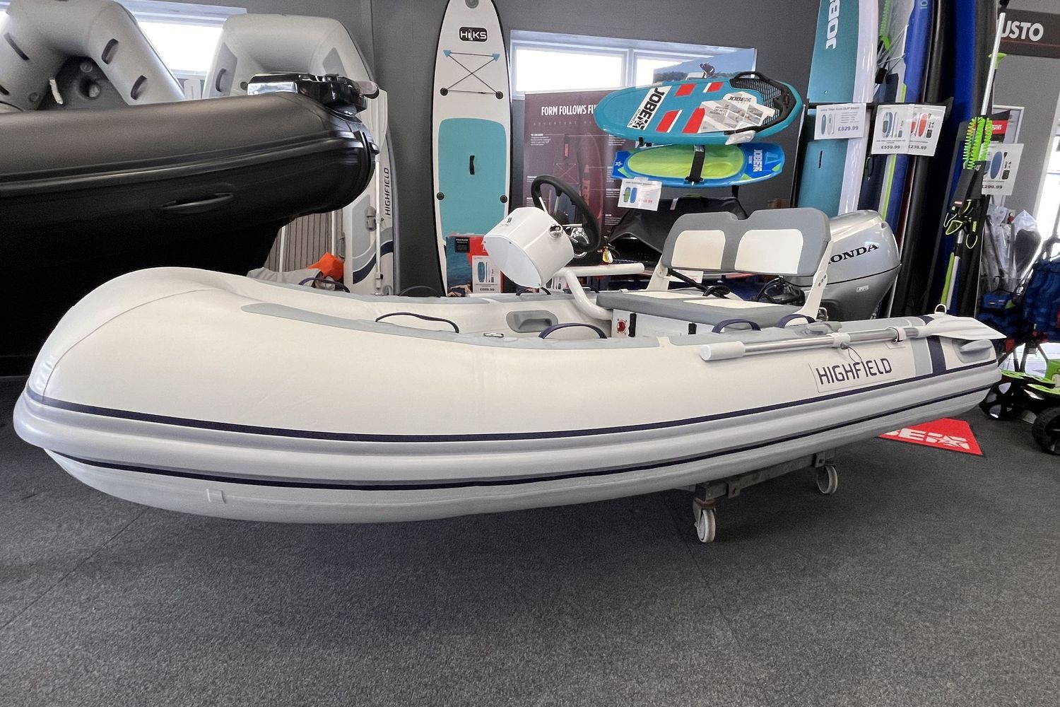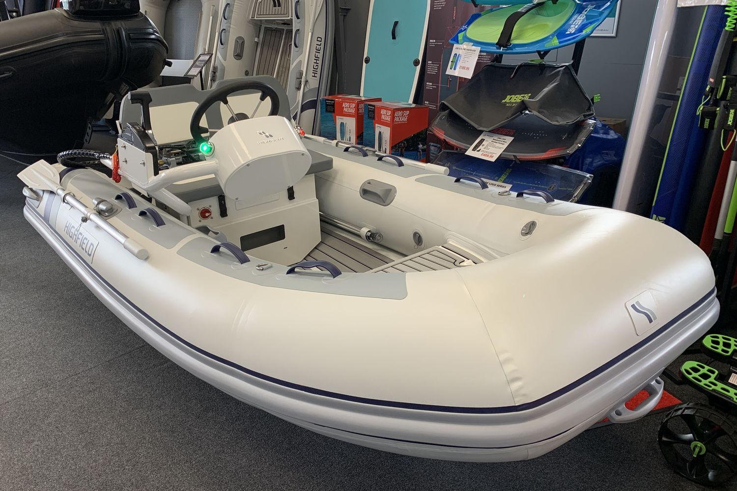 Highfield CL 310 aluminium RIB with capacity of 5+1 with Console, Bow locker and self-draining deck. Perfect for family days out on the water and exploring. This RIB offers extra comfort from the double hulled deck. The high quality finish and luxury look belies the fact that this range of tenders has been designed to work hard. A durable aluminium hull coupled with full length keel guards make these ideal for those beach-hopping days with friends and family. The large weight savings achieved compared to equivalent GRP tenders means you’ll enjoy impressive performance with smaller engines, and with excellent payload capacities, the Classic range really does offer a tender for everyone. The hulls of the Classics are built of 2.5mm thick powder coated marine grade aluminium. Valmex PVC tubes - 1100 DTEX coated fabric. Including rigging and fit out with battery.