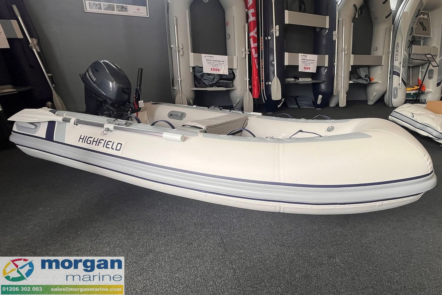 Highfield CL 310 aluminium RIB with a Yamaha F15 SMHA package deal with capacity of 5+1 with Bow locker and self-draining deck. Perfect for family days out on the water and exploring. This RIB offers extra comfort from the double hulled deck. The high quality finish and luxury look belies the fact that this range of tenders has been designed to work hard. A durable aluminium hull coupled with full length keel guards make these ideal for those beach-hopping days with friends and family. The large weight savings achieved compared to equivalent GRP tenders means you’ll enjoy impressive performance with smaller engines, and with excellent payload capacities, the Classic range really does offer a tender for everyone. The hulls of the Classics are built of 2.5mm thick powder coated marine grade aluminium. Valmex PVC tubes - 1100 DTEX coated fabric. Including rigging and fit out with battery.