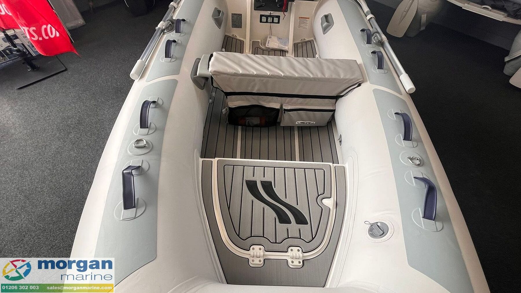 Deck: PVC tubes 44cm diameter. Self-draining deck. 2x Oars. Welded seams. Flush mount non return valves. High tensile chromated & powder coated aluminium hull. Bow locker (Fit 24L fuel tank). Integrated transom supports. Removable seat. Lifting points and towing eyes. Tow bridle points. Brushed foam teak finish deck. Heavy duty rubbing strake and full length keel guard. Foot pump and repair kit included with boat.