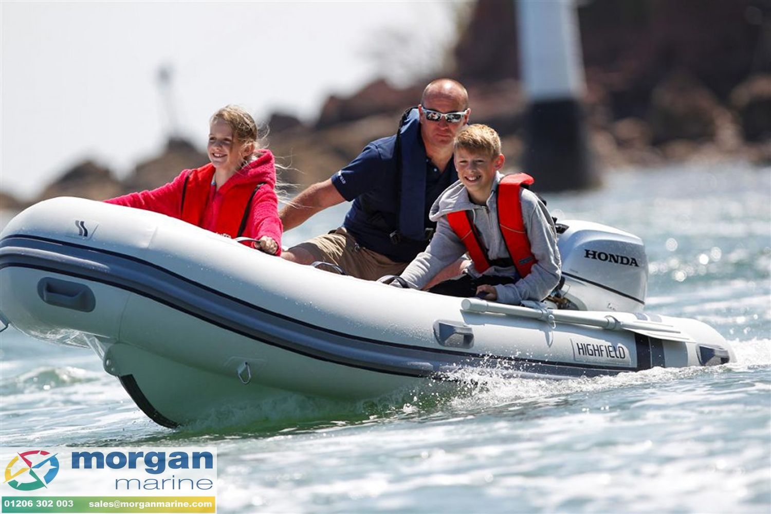 Highfield CL 360 aluminium RIB. Offering seating up to 6+1. This RIB offers extra comfort from the double hulled deck. The high quality finish and luxury look belies the fact that this range of tenders has been designed to work hard. A durable aluminium hull coupled with full length keel guards make these ideal for those beach-hopping days with friends and family or even perfect to take on the family holiday! The large weight savings achieved compared to equivalent GRP tenders means you’ll enjoy impressive performance with smaller engines, and with excellent payload capacities, the Classic range really does offer a tender for everyone. The hulls of the Classics are built of 2.5mm thick powder coated marine grade aluminium. Valmex PVC tubes - 1100 DTEX coated fabric. Including rigging and fit out with battery. Design category C. NB - library photos may not reflect specification of boat.