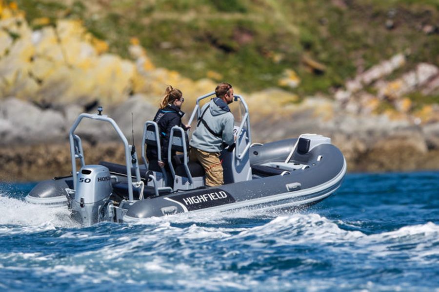 Highfield Classic 460 aluminium RIB with Honda BF80 LRTU outboard. This RIB can be fitted out as a fabulous family cruising RIB, a luxury tender or a hard working support vessel. Whatever layout you choose, you can be assured that this RIB is built to last. Designed with tough conditions in mind. Internal under-deck fuel tanks, non-slip deck, self-draining deck and a 20º dead rise let you take on even the toughest conditions confidently. With the impermeable qualities of our aluminium hulls there’s no need to worry about gelcoat chips, or putting the boat on a beach or a trailer. Easy to trail, easy to launch and recover; due to their light weight and integrated davit lifting eyes. 4mm thick powder coated marine grade aluminium. Valmex PVC tubes - 1100 DTEX coated fabric. This Highfield Classic 460 includes rigging and fit out with battery. Design category C. NB - library photos may not reflect specification of boat.