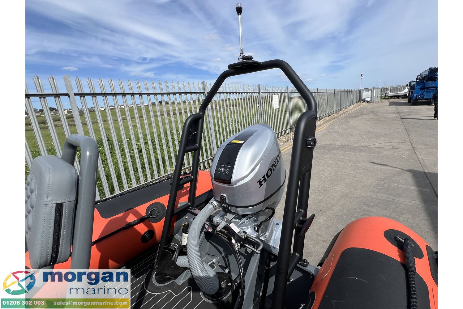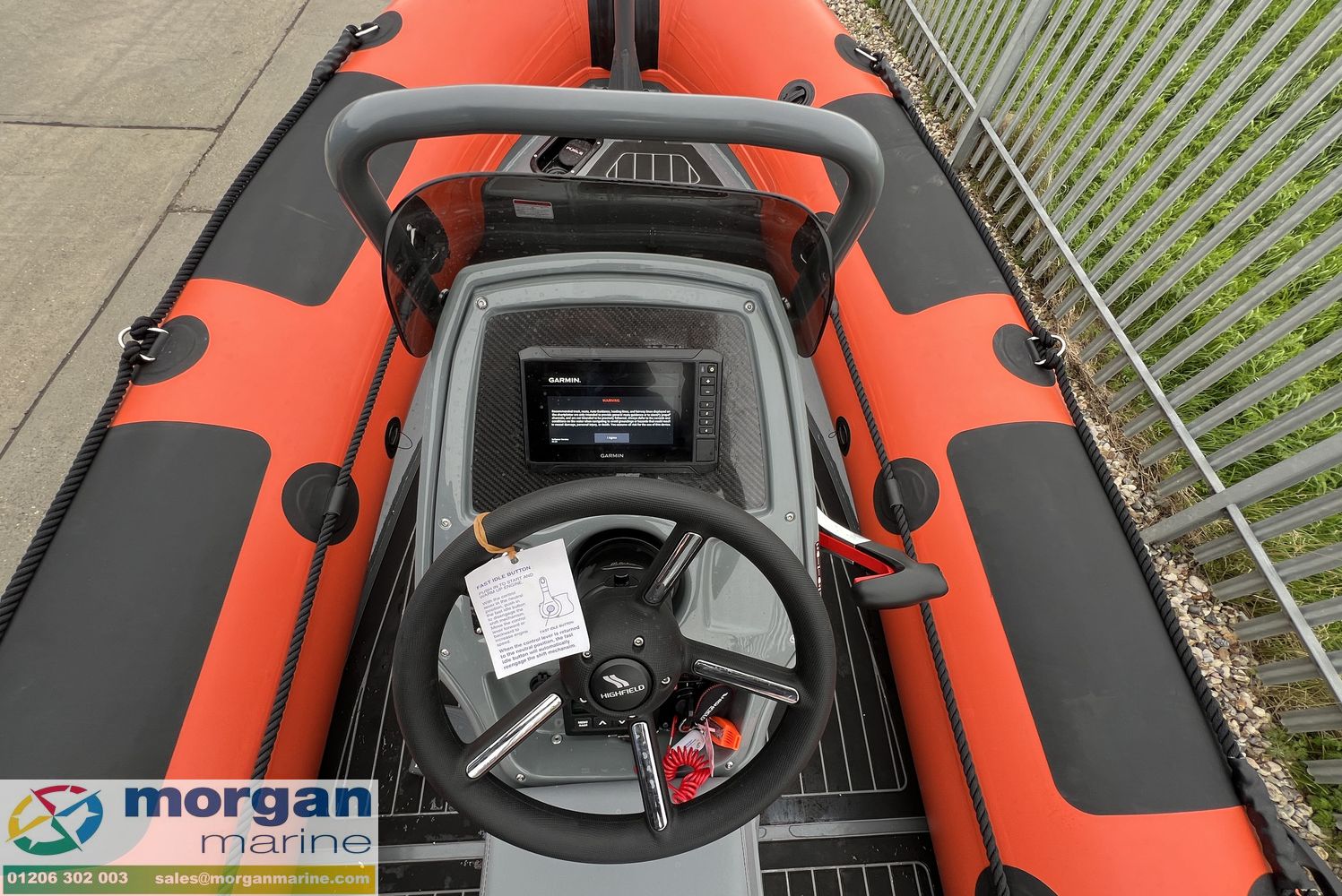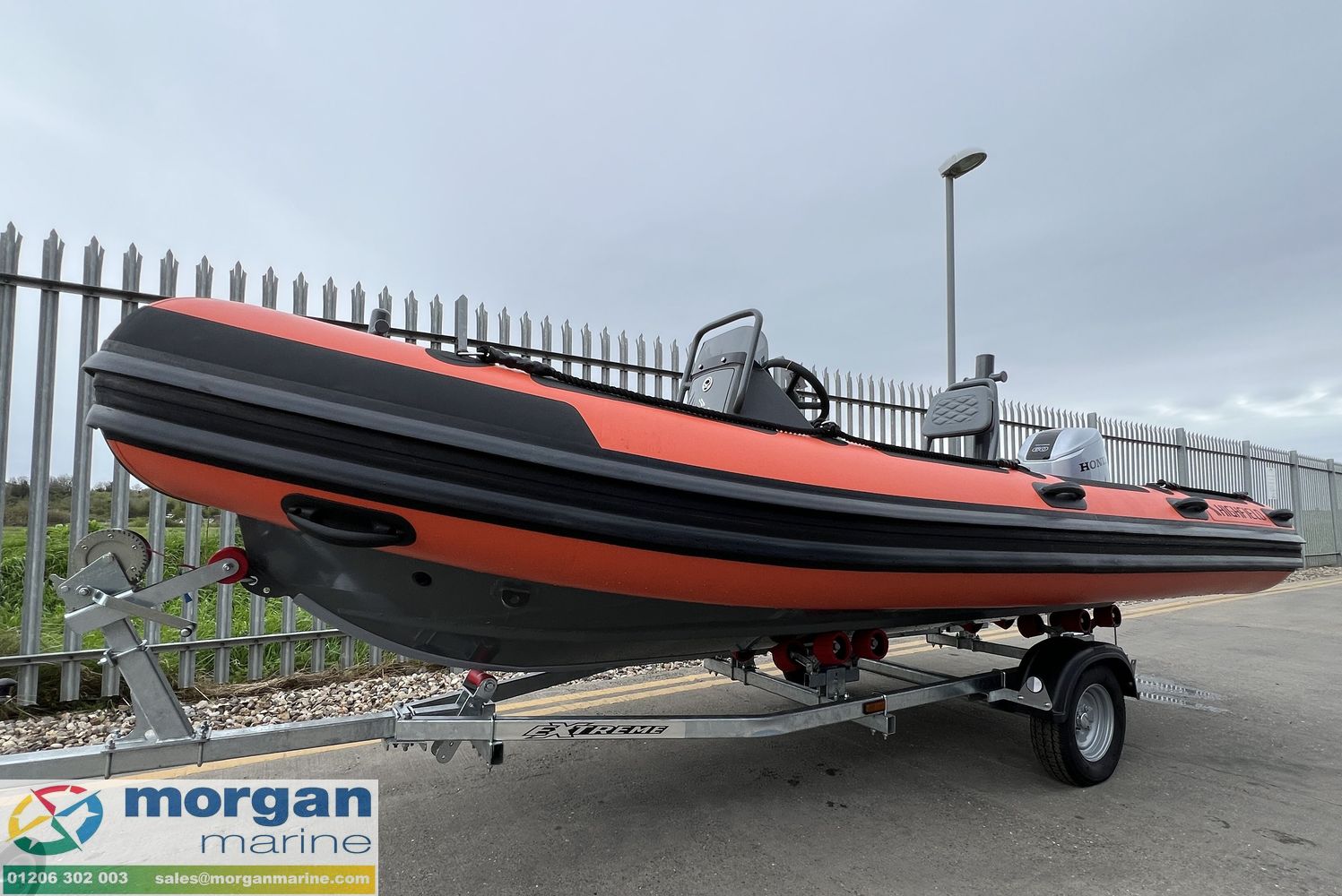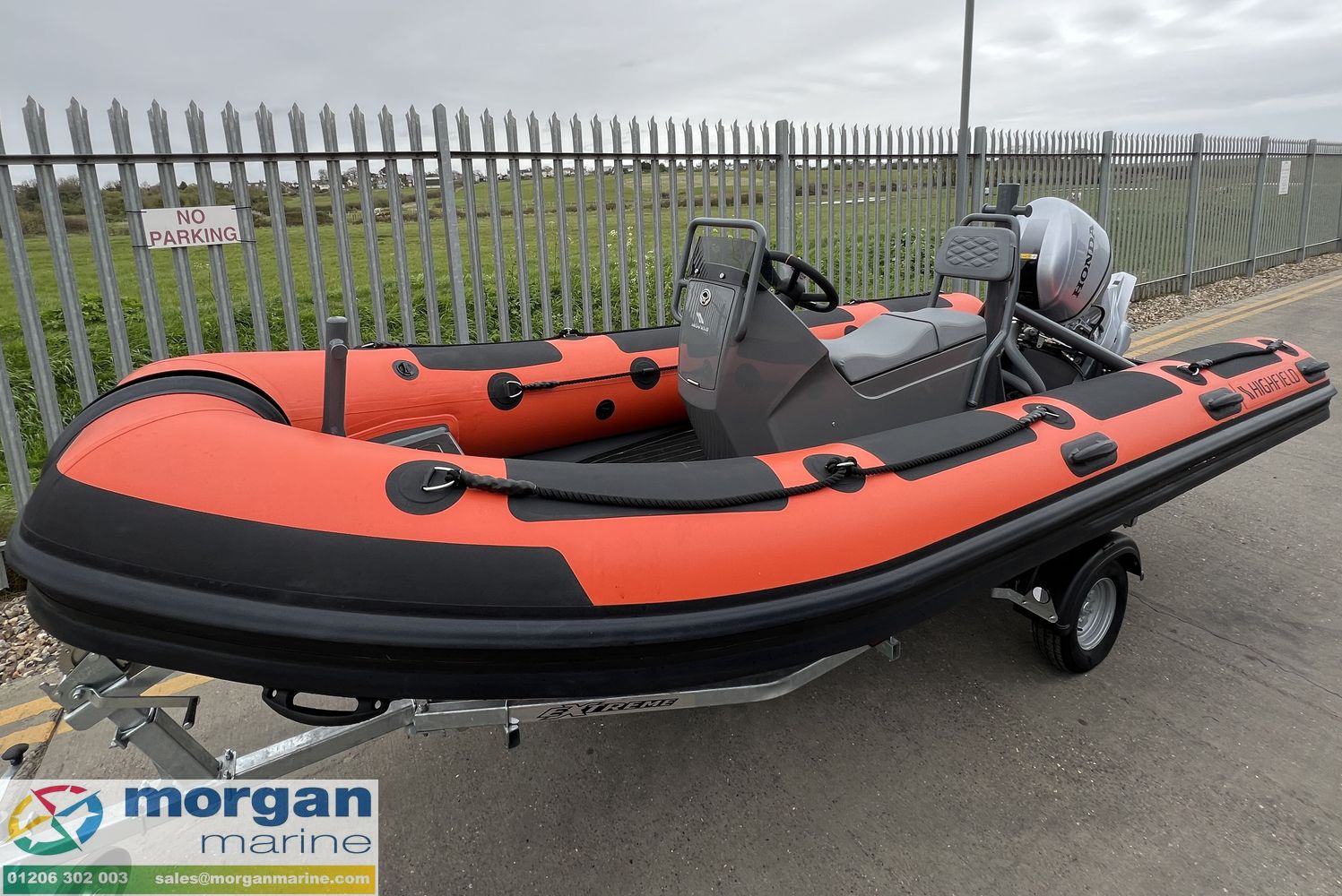 Highfield Patrol 460 aluminium RIB with Honda BF60 LRTU outboard and capacity of 9. With choice of either rear tow post or A-frame. A rugged and tough design perfect for the requirements of sailing clubs and commercial operators or for those who want a quality tough Rib. The Patrol range of commercial quality RIBs are designed to work both excellently as a long distance family cruiser or a hardcore work boat. Built to withstand the toughest of conditions. The hull is built from 5083 aluminium plates with 6 and 10mm stringers. With their super deep V, wide chines and large diameter tube, they offer high manoeuvrability, high safety and a soft dry ride even in the roughest conditions. The Highfield Patrol range of RIBs offers something for almost every requirement, from Sailing club support to Police and Rescue applications. The Patrol boats carry large loads and plane quickly and easily with little horse-power. For charter boat and commercial operators, the modular set-up option means that we can build a layout that suits your needs. These boats are ideal pursuit craft or work boats and can be configured with different seating and console options. When safety, toughness & reliability really matter, the Patrol range should be your first port of call. Design category C. NB - library photos may not reflect specification of boat.
