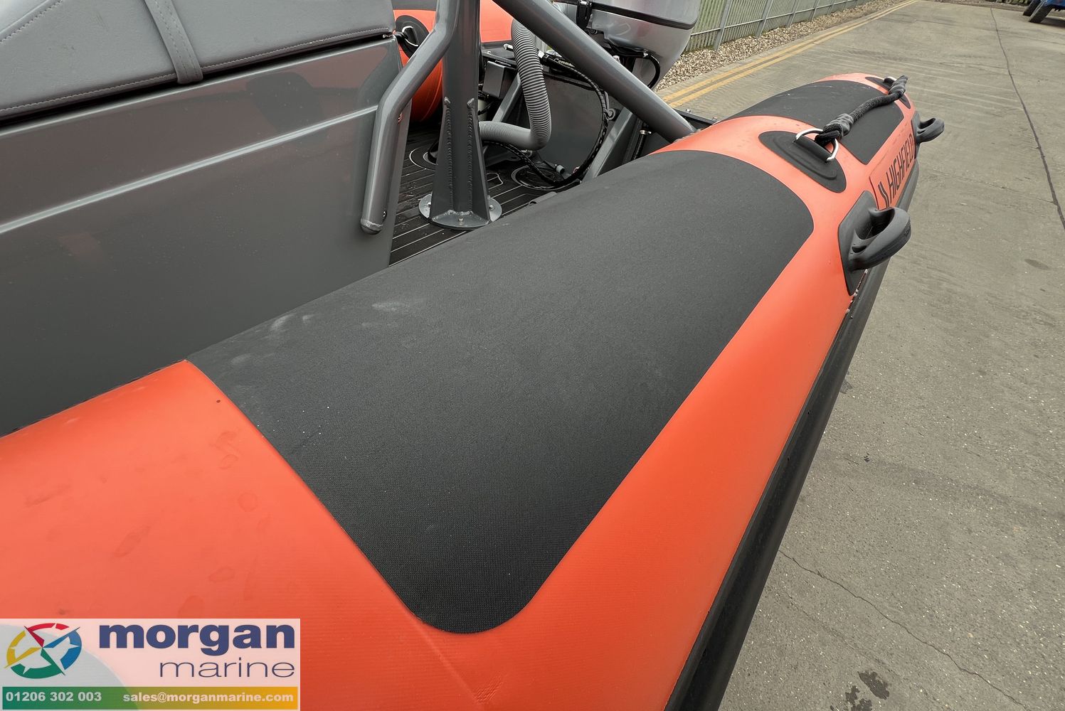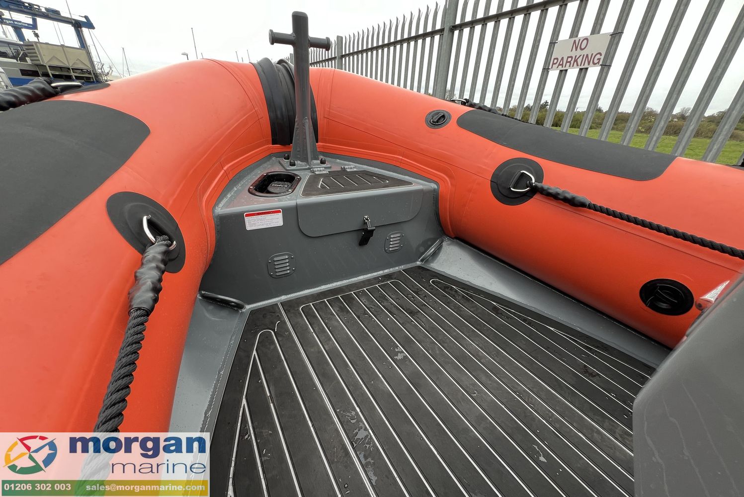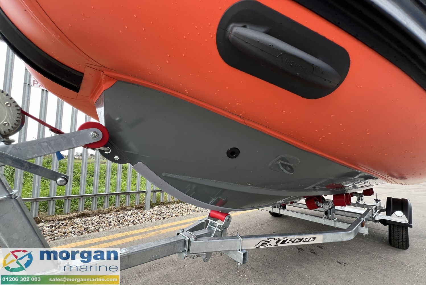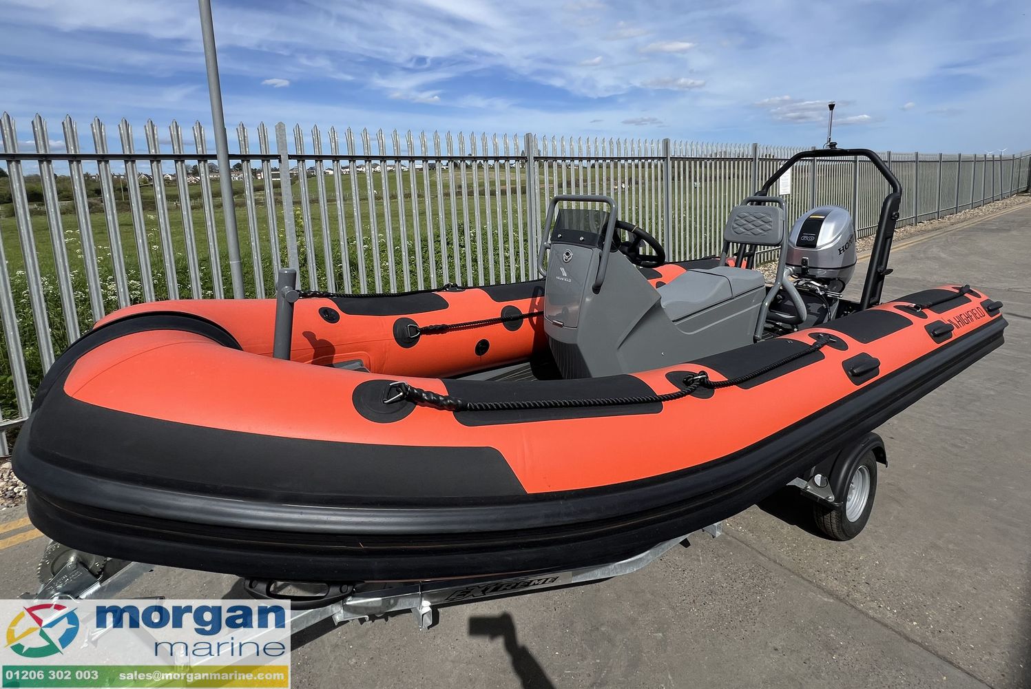 Highfield Patrol 460 aluminium RIB with Honda BF60 LRTU outboard and capacity of 9. With choice of either rear tow post or A-frame. A rugged and tough design perfect for the requirements of sailing clubs and commercial operators or for those who want a quality tough Rib. The Patrol range of commercial quality RIBs are designed to work both excellently as a long distance family cruiser or a hardcore work boat. Built to withstand the toughest of conditions. The hull is built from 5083 aluminium plates with 6 and 10mm stringers. With their super deep V, wide chines and large diameter tube, they offer high manoeuvrability, high safety and a soft dry ride even in the roughest conditions. The Highfield Patrol range of RIBs offers something for almost every requirement, from Sailing club support to Police and Rescue applications. The Patrol boats carry large loads and plane quickly and easily with little horse-power. For charter boat and commercial operators, the modular set-up option means that we can build a layout that suits your needs. These boats are ideal pursuit craft or work boats and can be configured with different seating and console options. When safety, toughness & reliability really matter, the Patrol range should be your first port of call. Design category C. NB - library photos may not reflect specification of boat.