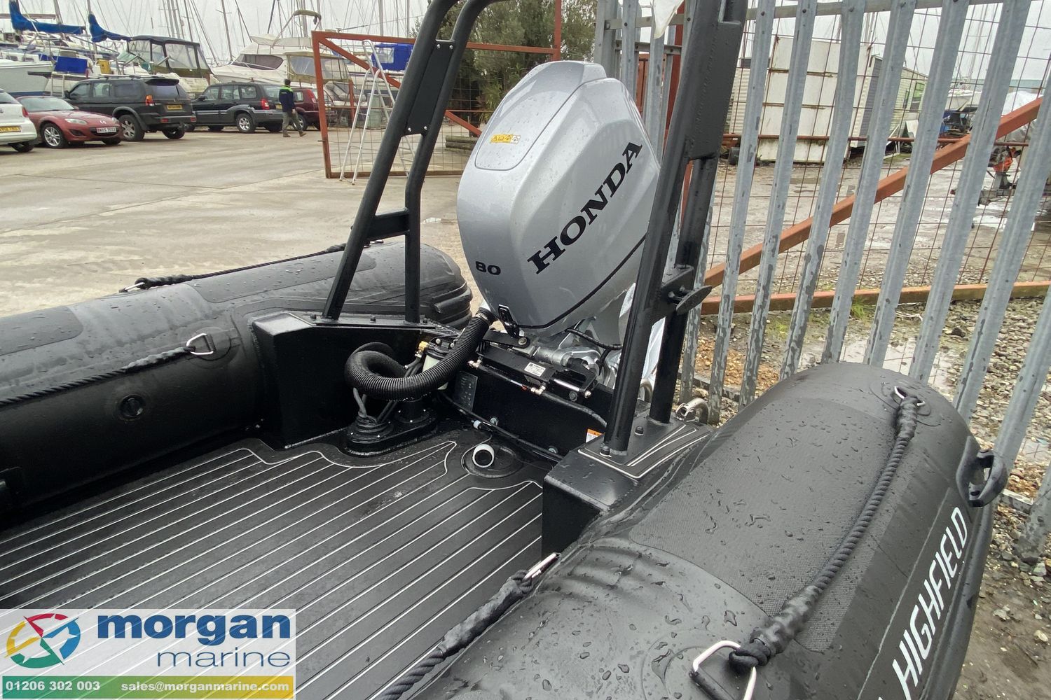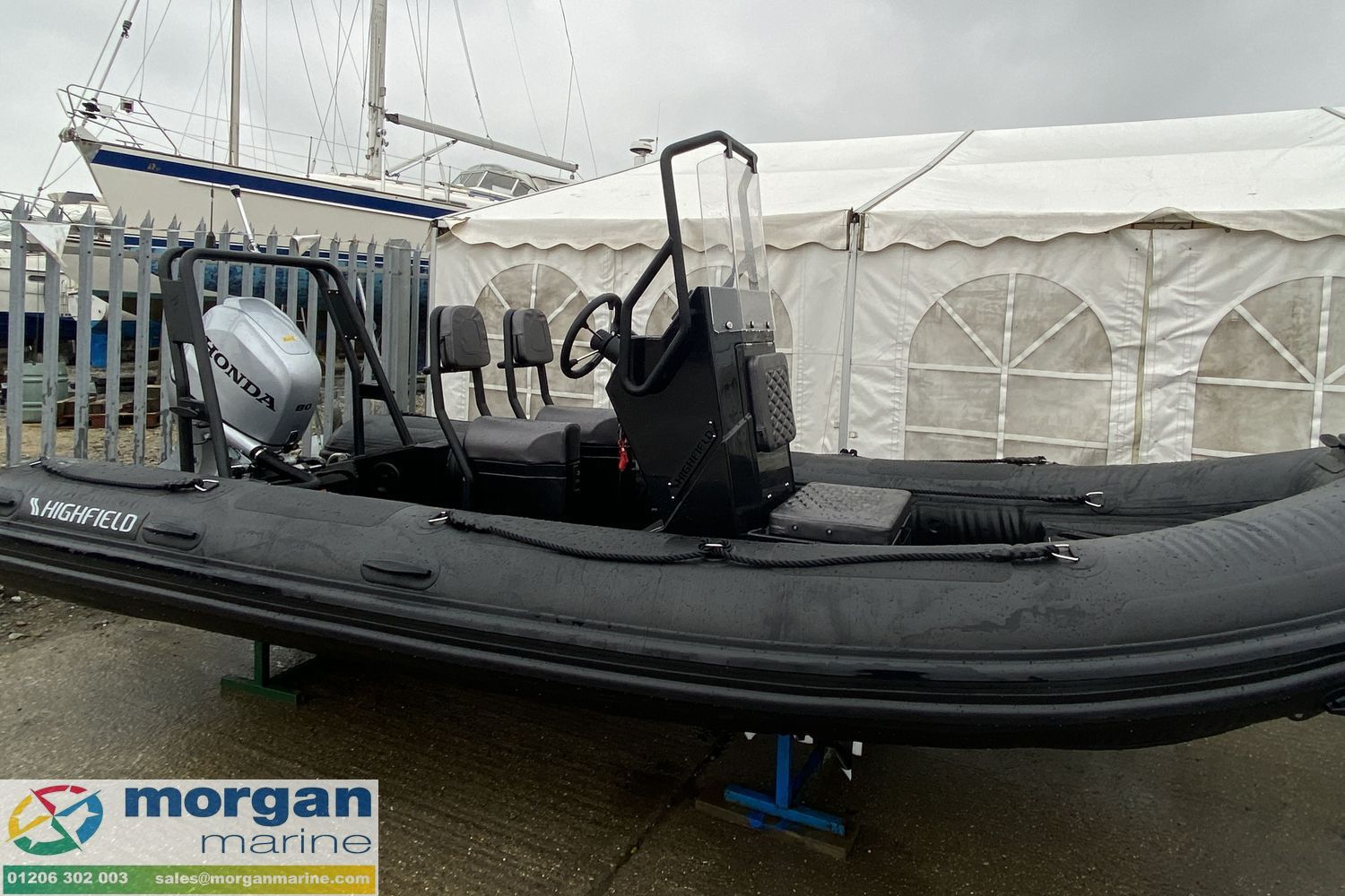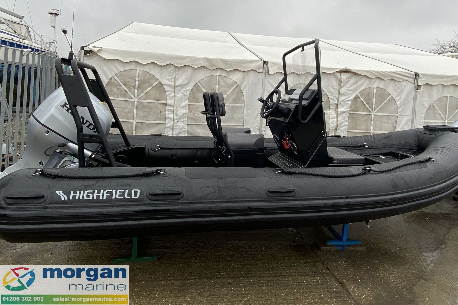 Highfield Patrol 500 RIB with Honda BF100 LRTU outboard and capacity of 10. The Patrol range of commercial quality RIBs are designed to work both excellently as a long distance family cruiser or a hardcore work boat. Built to withstand the toughest of conditions. The hull is built from 5083 aluminium plates with 6 and 10mm stringers. With their super deep V, wide chines and large diameter tube, they offer high manoeuvrability, high safety and a soft dry ride; even in the roughest conditions. The Highfield Patrol RIBs range offers something for almost every requirement, from Sailing club support to Police and Rescue applications. The Patrol boats carry large loads and plane quickly and easily with little horse-power. For charter boat and commercial operators, the modular set-up option means that we can build a layout that suits your needs. These boats are ideal pursuit craft or work boats and can be configured with different seating and console options. When safety, toughness & reliability really matter, the Patrol range should be your first port of call. With MCA rating & commercial coding available, the Highfield Patrol 500 is perfect for commercial chartering or working offshore too. Design category C. Storm PVC Tubes in Mehler PVC.