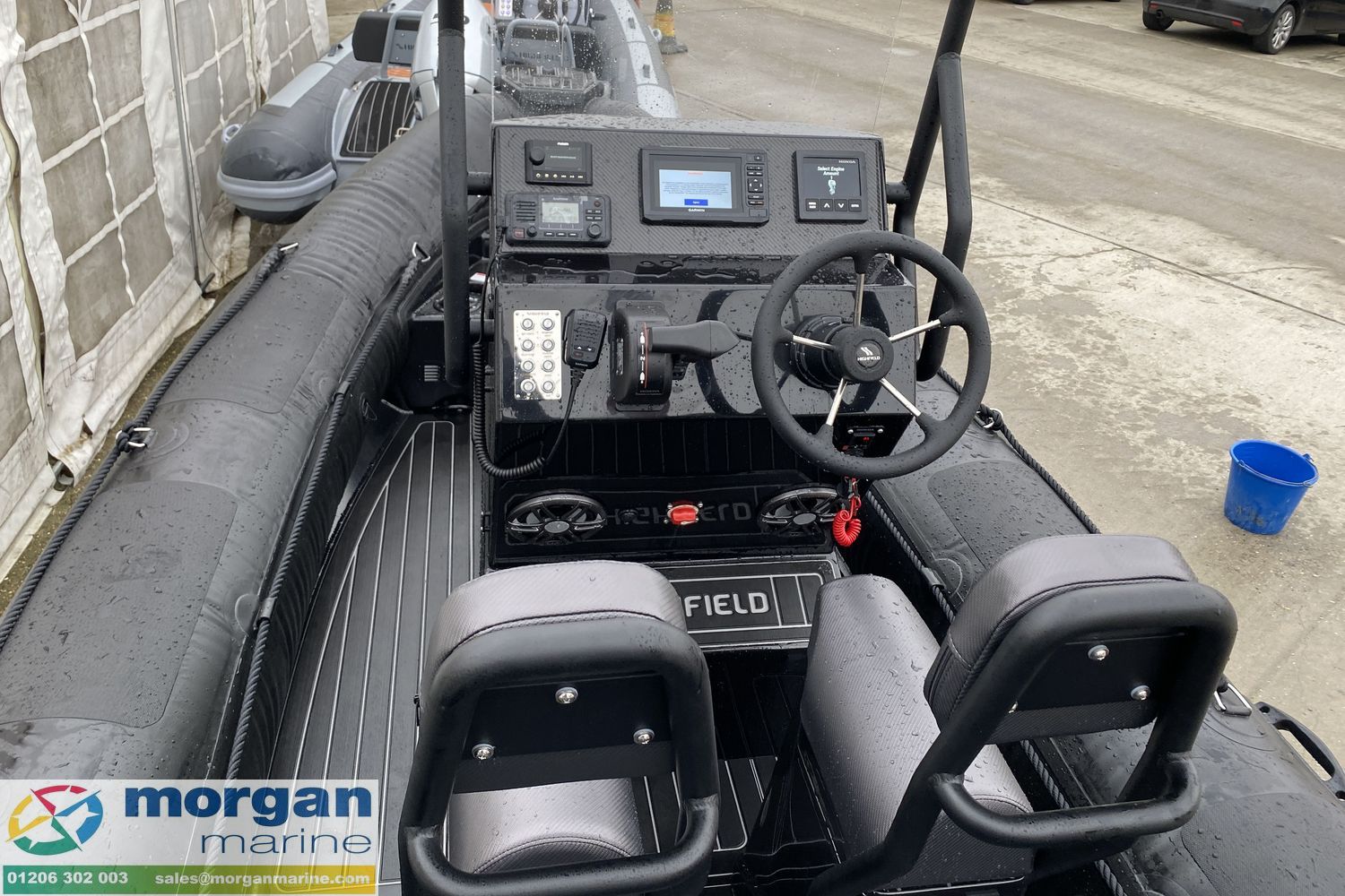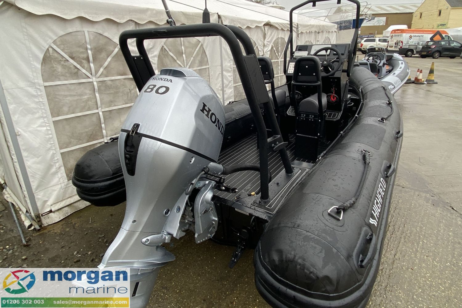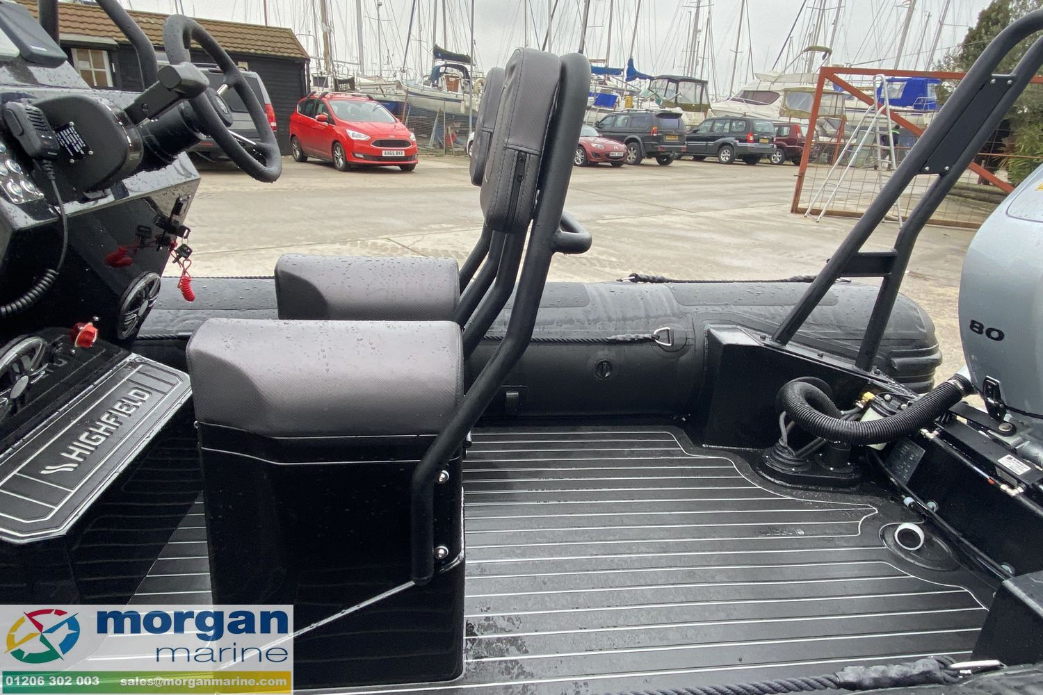 Highfield Patrol 500 RIB with Honda BF100 LRTU outboard and capacity of 10. The Patrol range of commercial quality RIBs are designed to work both excellently as a long distance family cruiser or a hardcore work boat. Built to withstand the toughest of conditions. The hull is built from 5083 aluminium plates with 6 and 10mm stringers. With their super deep V, wide chines and large diameter tube, they offer high manoeuvrability, high safety and a soft dry ride; even in the roughest conditions. The Highfield Patrol RIBs range offers something for almost every requirement, from Sailing club support to Police and Rescue applications. The Patrol boats carry large loads and plane quickly and easily with little horse-power. For charter boat and commercial operators, the modular set-up option means that we can build a layout that suits your needs. These boats are ideal pursuit craft or work boats and can be configured with different seating and console options. When safety, toughness & reliability really matter, the Patrol range should be your first port of call. With MCA rating & commercial coding available, the Highfield Patrol 500 is perfect for commercial chartering or working offshore too. Design category C. Storm PVC Tubes in Mehler PVC.