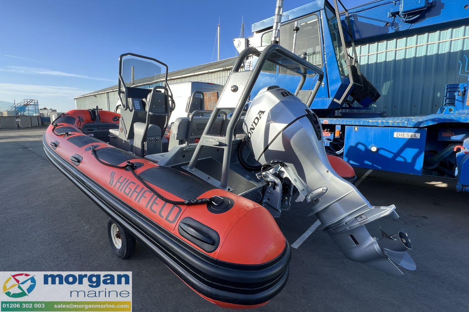 Highfield Patrol 540 aluminium RIB with Honda BF80 XRTU outboard. This Highfield Patrol 540 package has been specially specified by us at Morgan Marine to suit the needs of commercial clubs, sailing clubs and rescue boat duties as required. With the Extra Deep Vee and the frugal Honda BF80 this makes for a brilliant rugged package built for the toughest environments, capable of still achieving 30 knots. The Highfield Patrol 540 with the aluminium hull offers many benefits over traditional GRP such as lower weight, no GRP chipping or cracking, additional rigidity and more. With a rating to carry 12 people the structural integrity and buoyancy this rib offers speaks for itself. We offer a special club / commercial discount on these packages.
