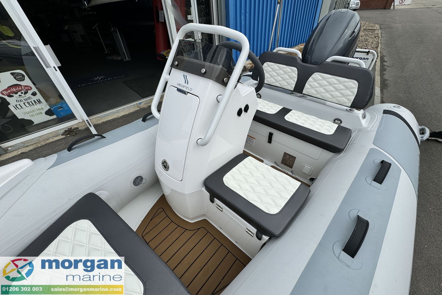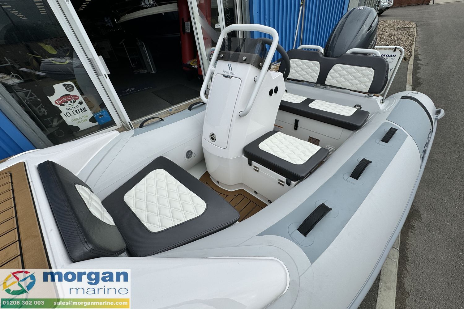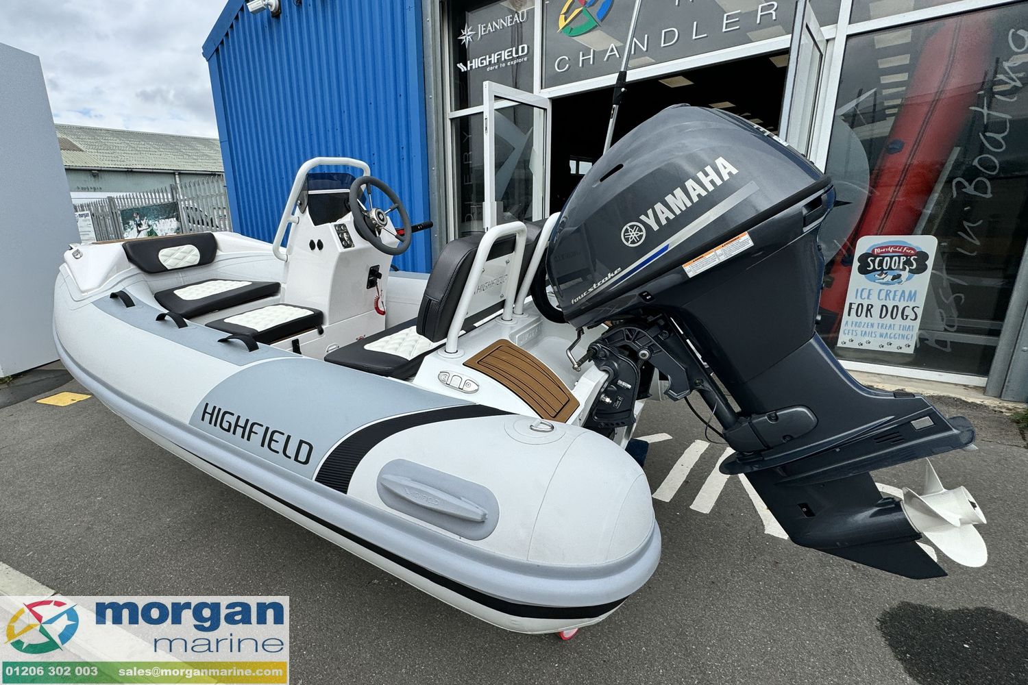 Highfield Sport 300 aluminium RIB with Yamaha F30 BETL outboard and capacity of 4. The Sport range has been 9 years in the making. This range of high quality boats will offer a choice from 3 metres up to 8 metres and combines all of our hull design expertise with an interior that you demand. Nothing has been sacrificed in the design of this range. Top quality materials are the hallmark of what we do and we have not compromised. Hull deadrise angles ranging from 20 degrees on the 3 metre going through to a huge 26 degrees on the 650 and up will give you assurance in the toughest conditions. The additions such as EVA teak throughout, integrated fuel tanks, superb diamond stitched upholstery and bathing platforms on our larger models will allow you to enjoy each day to the maximum. With the impermeable qualities of our aluminium hulls there’s no need to worry about gelcoat chips, or putting the boat on a beach or trailer. All Highfield Sport RIBs are easy to tow, launch and recover due to their light weight and integrated davit lifting eyes. The Highfield Sport 300 will not delaminate or absorb water over time, retaining the same agile performance in 10 years time as the day you collected it. Low weight garage tender or runabout - design category C. White tubes in Mehler PVC.