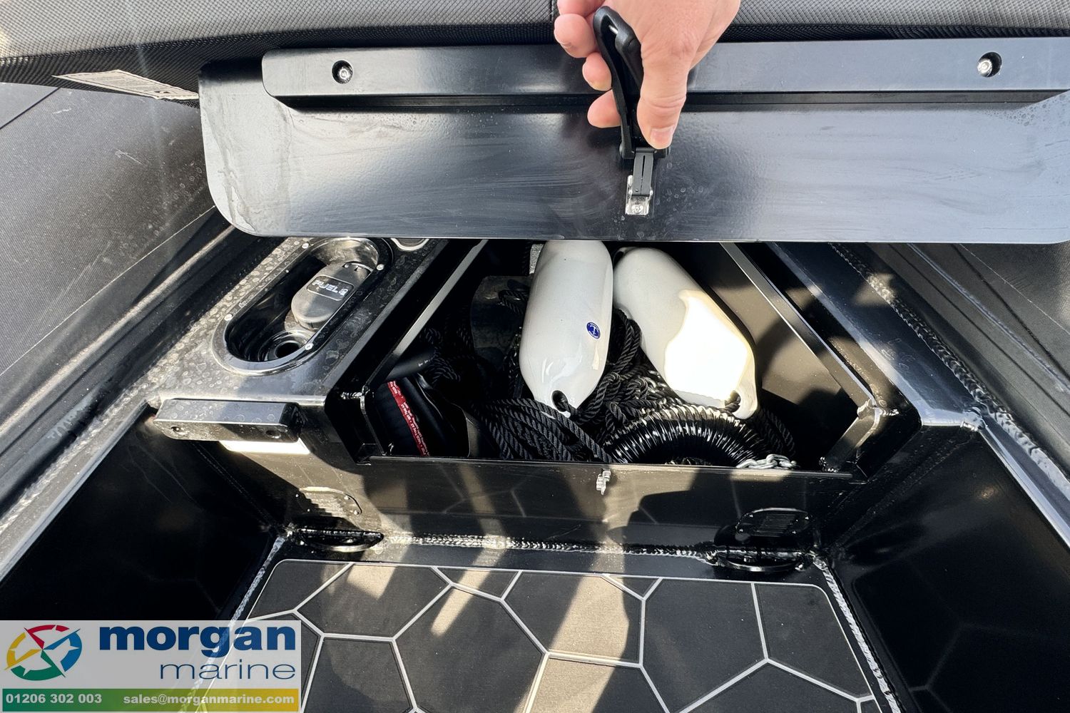 Machinery: Honda BF 100 XRTU outboard with hydraulic steering system. Internal under-deck fuel tanks. Fuel capacity: 105L. Option of upgrade to BF115 XRU for £2,060.