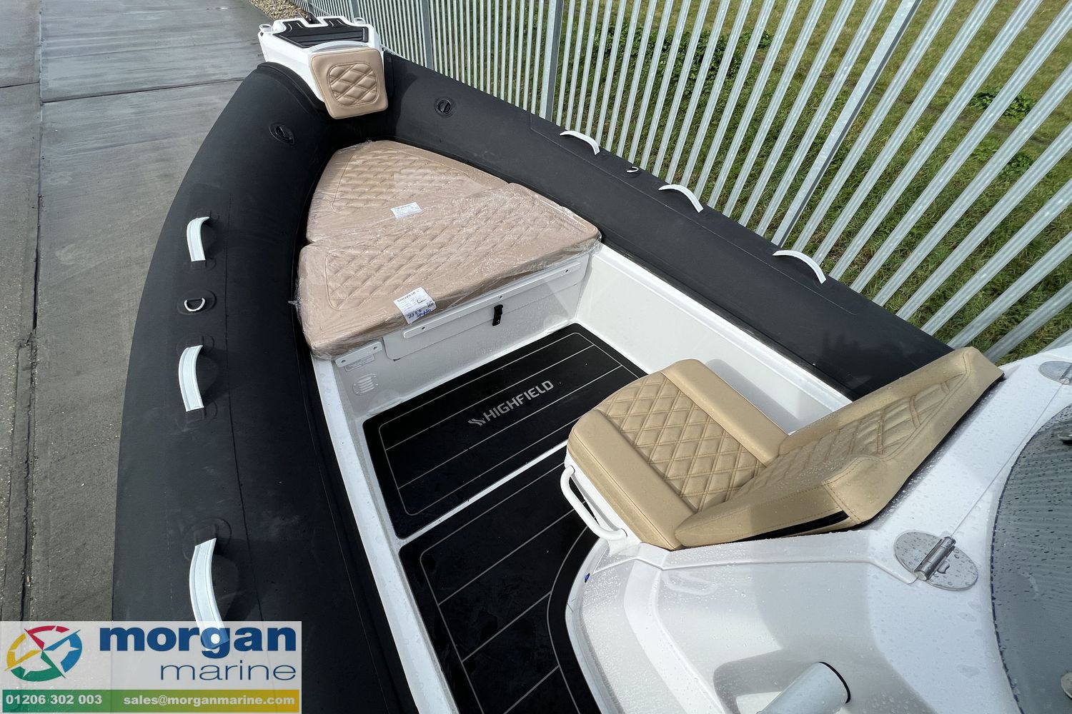 Highfield Sport 660 aluminium RIB with Honda BF150 outboard offering thrilling performance of 42 knots and boat capacity of 13 people. Nothing has been sacrificed in the design of this boat. Top quality materials are the hallmark of what Highfield do. A hull deadrise angle of 26 degrees on the Highfield Sport 660 will give you assurance in the toughest conditions. A superb RIB which will withstand the toughest conditions and decades of use. The Aluminium hull offers many advantages from no worries of delamination, no gel coat chips and being stronger and lighter than its GRP competition. This boat comes fully equipped ready to hit the water with Garmin Echomap UHD2 95 chartplotter, Garmin VHF 115i, Fusion audio system with speakers, Honda digital engine display. Sun deck, tow post, Twin jockey seats are also included in this fantastic boat. Design category C. Black tubes in Hypalon. NB - library photos may not reflect specification of boat.