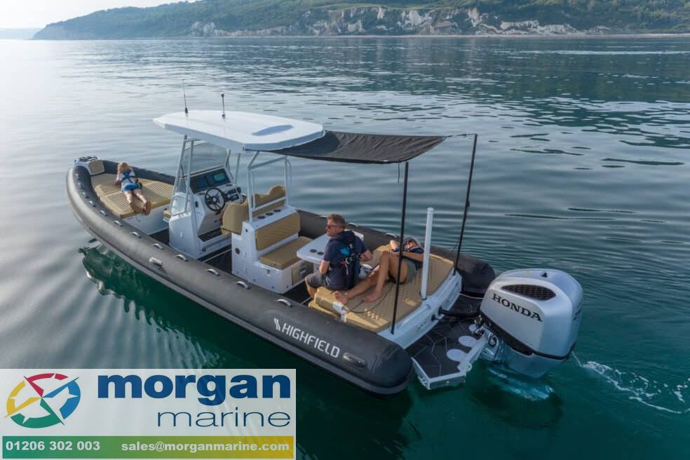 Highfield Sport 800 aluminium RIB with Honda BF350 outboard (Drive By Wire) and capacity of 15 people. The Highfield Sport range of high quality boats offers a choice from 3 metres up to 8 metres and combines all of our hull design expertise with an interior that you demand. Nothing has been sacrificed in the design of this range. Top quality materials are the hallmark of what we do and we have not compromised. The additions such as EVA teak throughout, integrated fuel tanks, superb diamond stitched upholstery and bathing platforms on our larger models will allow you to enjoy each day to the maximum. With the impermeable qualities of our aluminium hulls there’s no need to worry about gelcoat chips, or putting the boat on a beach or trailer. Lightweight and integrated davit lifting eyes. Your Highfield Sport 800 RIB will not delaminate or absorb water over time, retaining the same agile performance in 10 years time as the day you collected it. Design category B or C. NB - library photos may not reflect specification of boat.