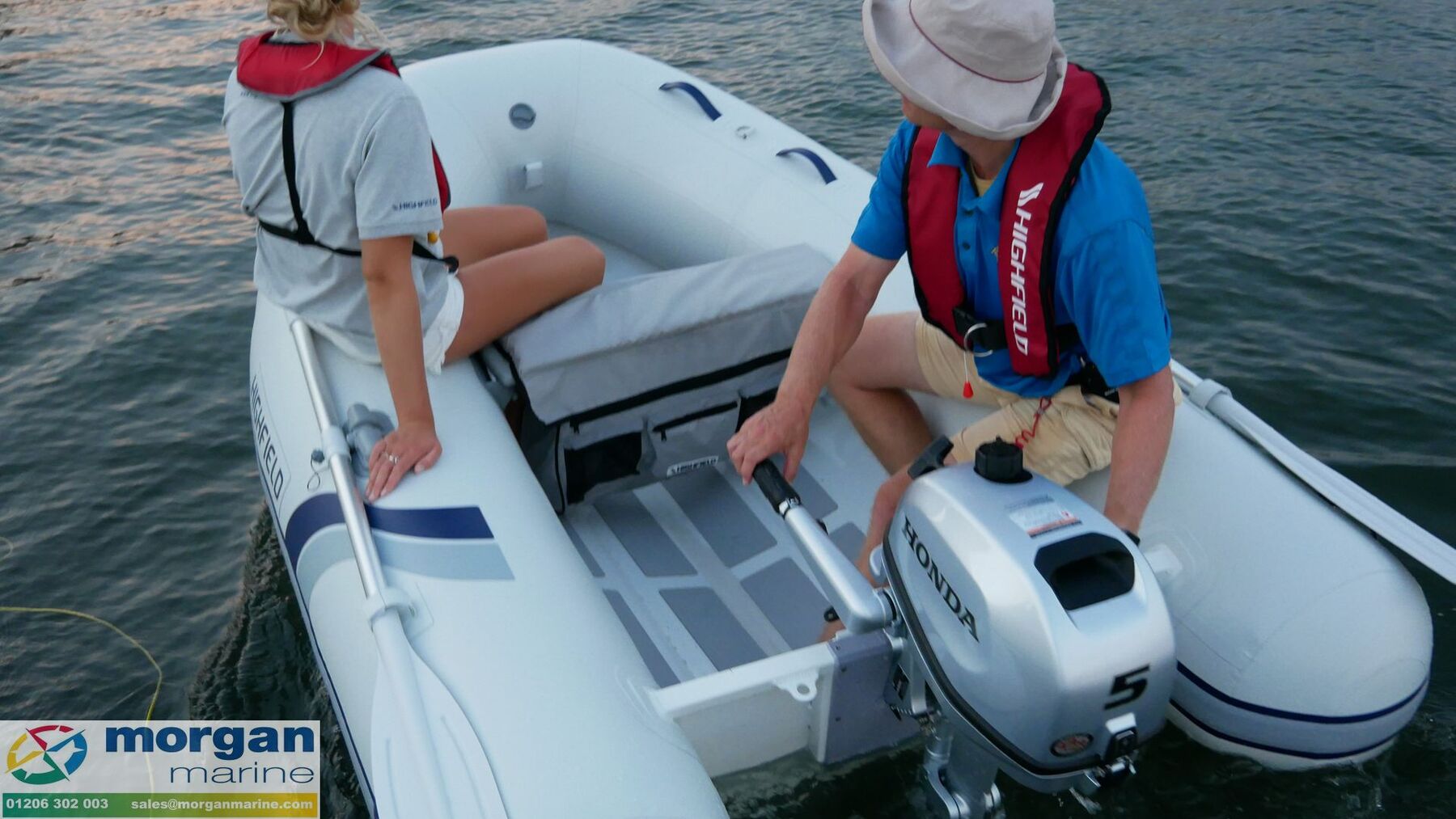 Highfield UL 260 (Ultralite) aluminium RIB with Valmex PVC tubes - capacity 3+1. No engine fitted - max 6hp. Morgan Marine can supply a suitable new or used outboard engine - maximum 6hp for this RIB. Morgan Marine are a UK dealer for Highfield Boats, the world’s number one aluminium hulled RIB manufacturer. The Highfield UltraLite tender range is designed to be strong, yet very lightweight and an alternative to a soft bottom tender. With the tough, non-porous qualities of the powder coated aluminium hull, there is no need to worry about getting gelcoat chips, or putting your boat on a beach or a trailer. Can be transported on a roof rack and launched / retrieved by a single person. Complete with dry bag, foot pump, paddles and repair kit. Please note images shown may not match specification.