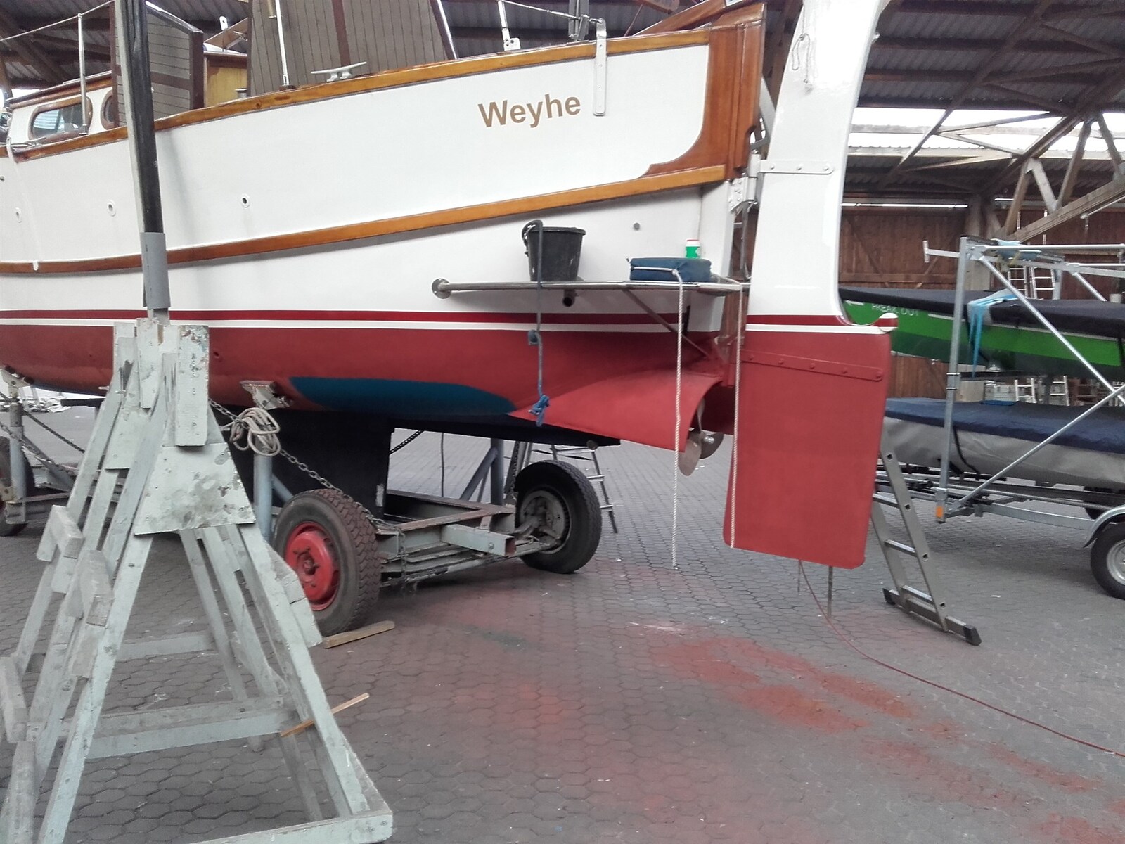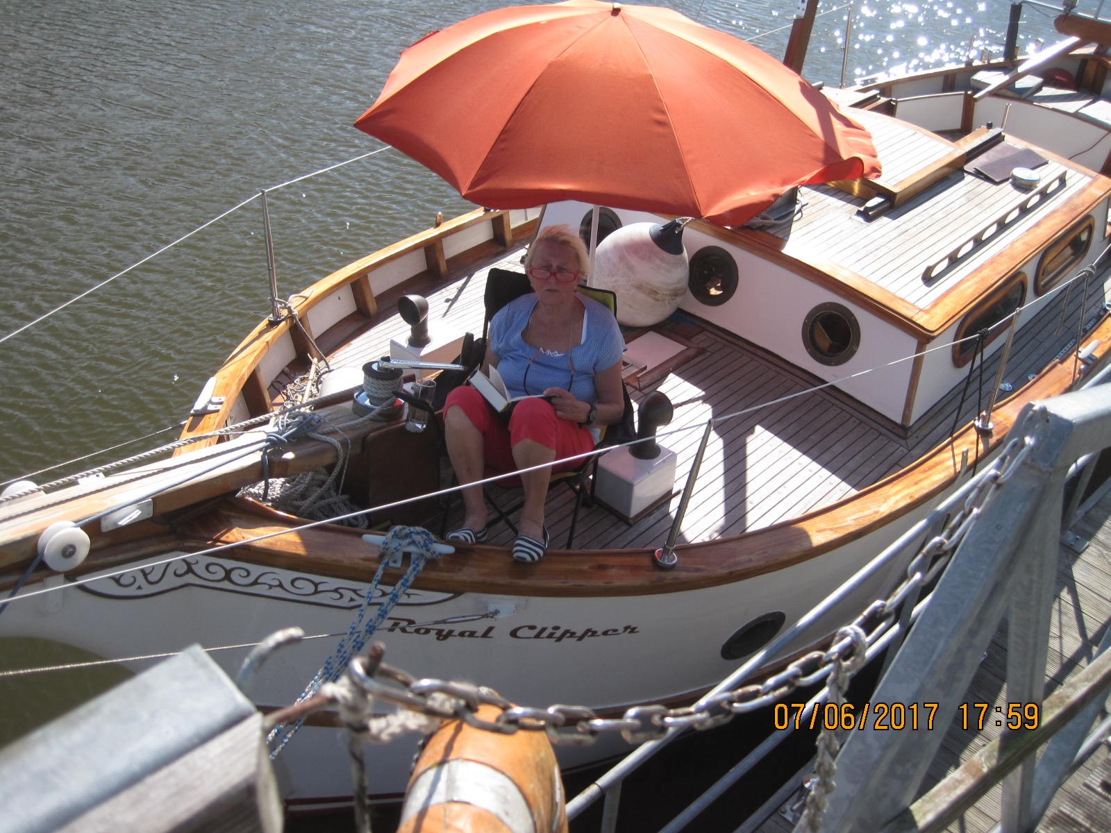 Motor Alarm, Anker (CQR 18kg), Waterdruk systeem, Elektrische kabelhaspel, 3 Accu's (1 davon neu in 2017), Afvoer systeem, Teak op gangboorden, Reserve propeller, Platform, Handmatige bilgepomp (38mm Bordwandeinbau), Teak in kuip, Handmatige ankerlier (Zweigang Lewmar 180mm), Staand want, Gangboord, Zwemtrap, Kuiptafel, Hoorn, 2 Lier, Boeglier.