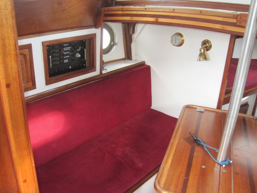 Engine Alarm, Anchor (CQR 18kg), Water pressure pump, Electric cable reel, 3 Batteries (1 davon neu in 2017), Draining System, Teak Side Decks, Secondary Propeller, Platform, Manual Bilge Pump (38mm Bordwandeinbau), Teak Cockpit, Manual Windlass (Zweigang Lewmar 180mm), Strand rigging, Gang Board, swimming ladder, cockpit table, Horn, 2 Winch, Bow Winches.