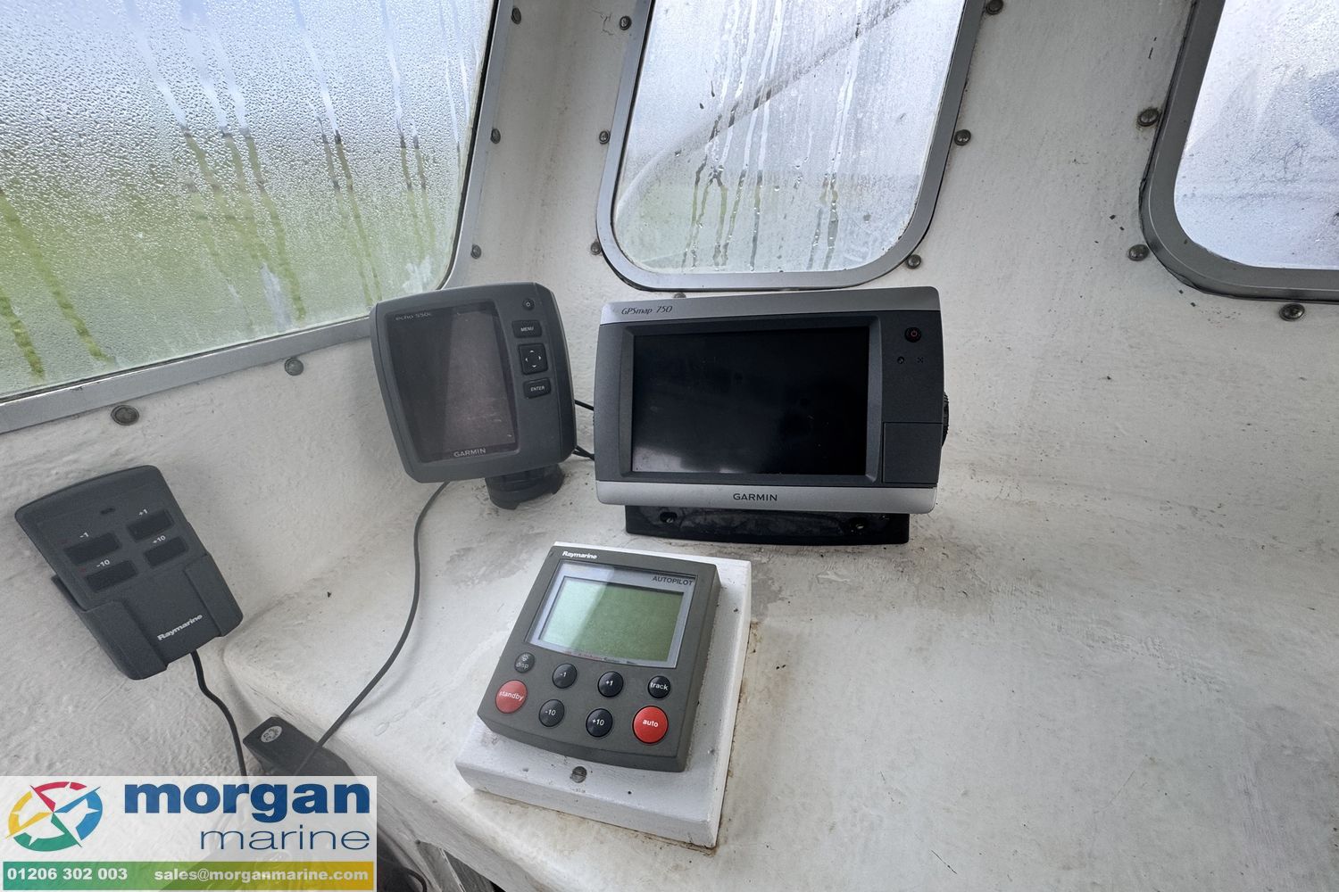 The Holton 24 is a very popular vessel with inshore fisherman, the wide beam and deep bilges maximises the boats load carrying capacity and provides enhanced stability along with a fine entry and excellent displacement. With its self-draining decks and excellent working areas plus a high sheer line make the Holton 24 the perfect work boat. Powered by a Volvo Penta MD22 four-cylinder diesel engine just in at Morgan Marine. With a good array of electronics including Garmin GPS Map 750, Garmin Echomap 550c, Raymarine Autopilot, Raymarine C70 plotter and Garmin VHF radio. For more information and viewing please give us a call.