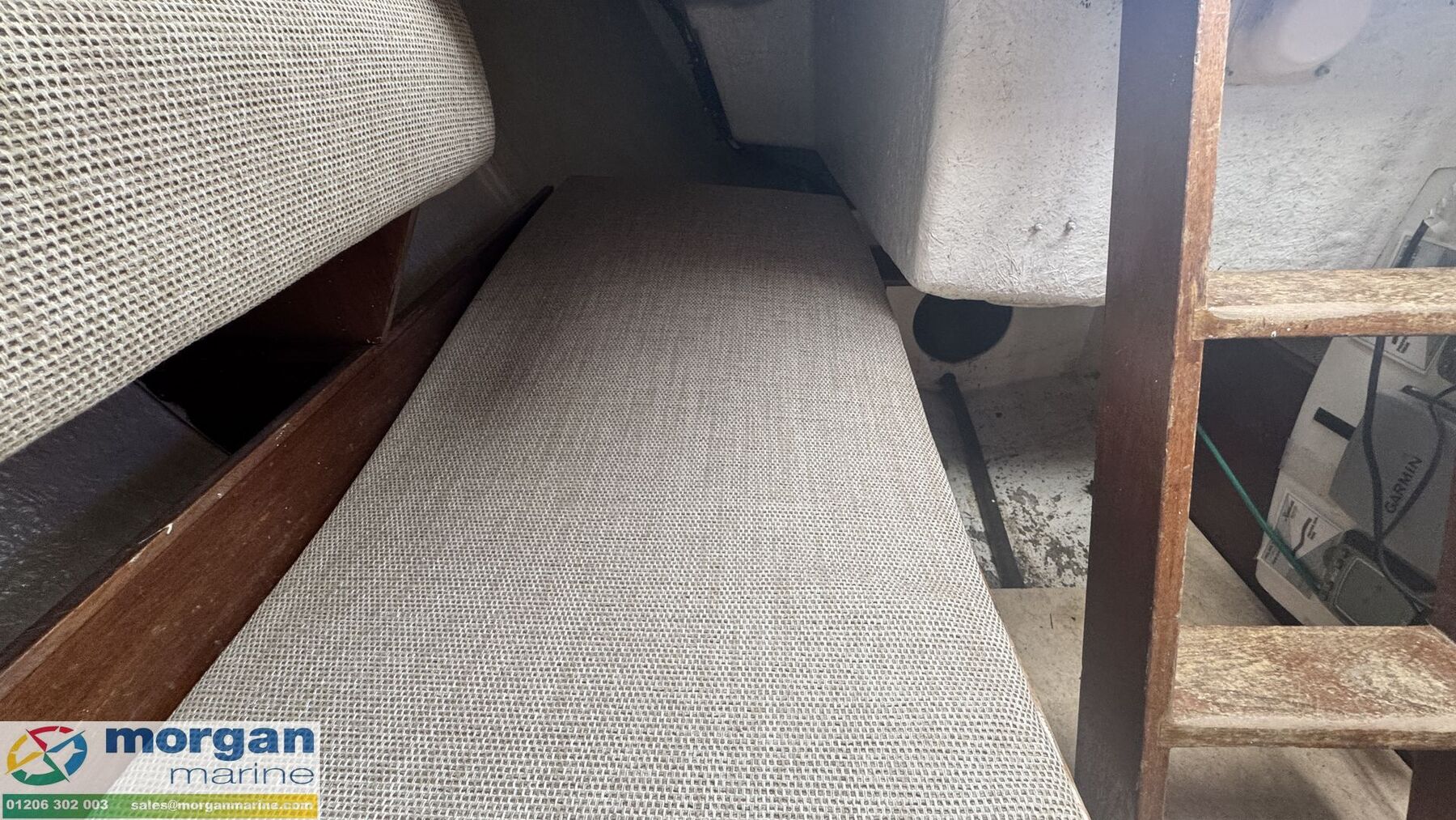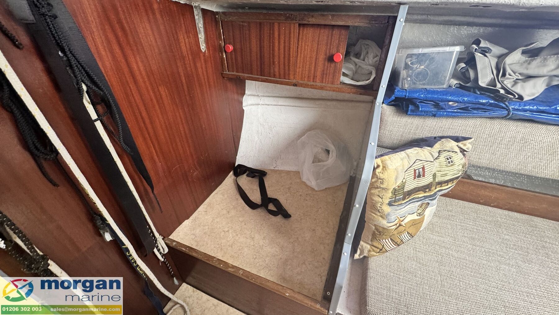 Cabin: Forward V-berth cuddy. Sea toilet fitted in cuddy area. Saloon bench style cushioned seating making 2x single berths. Upholstery never used.