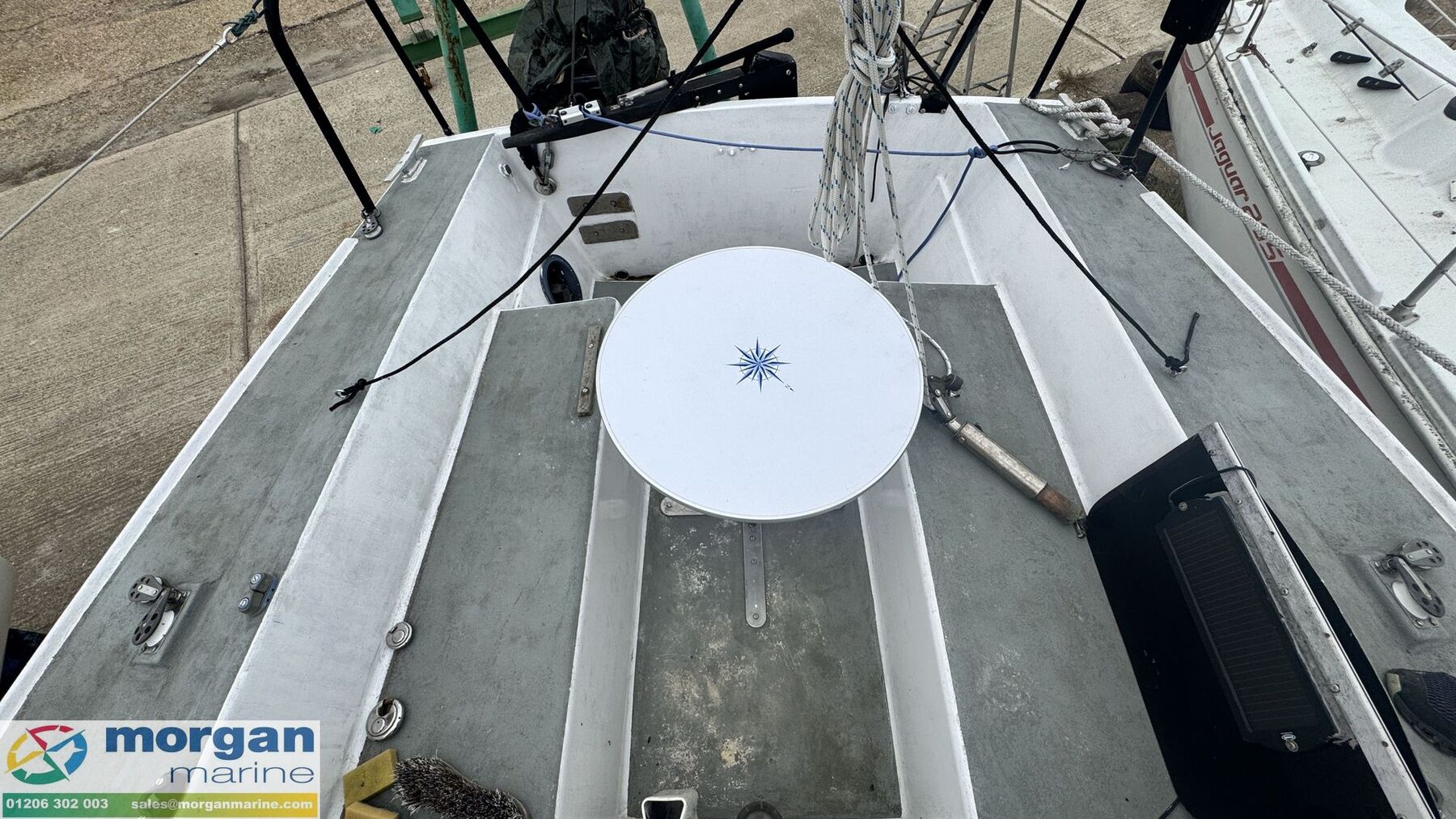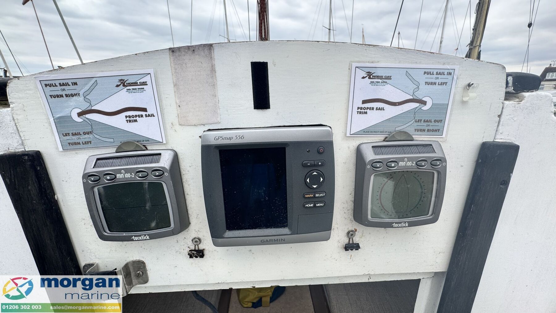 Electronics: Instruments on separate wash board - Garmin GPSmap 556. Raymarine Tacktick mn100-2 including wind, speed and direction. Removable navigation lights. Solar charging on battery.