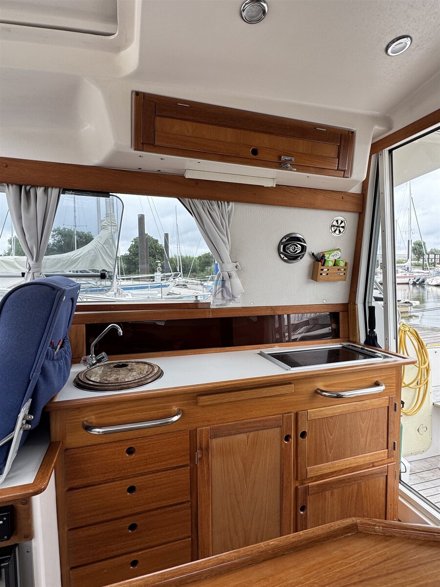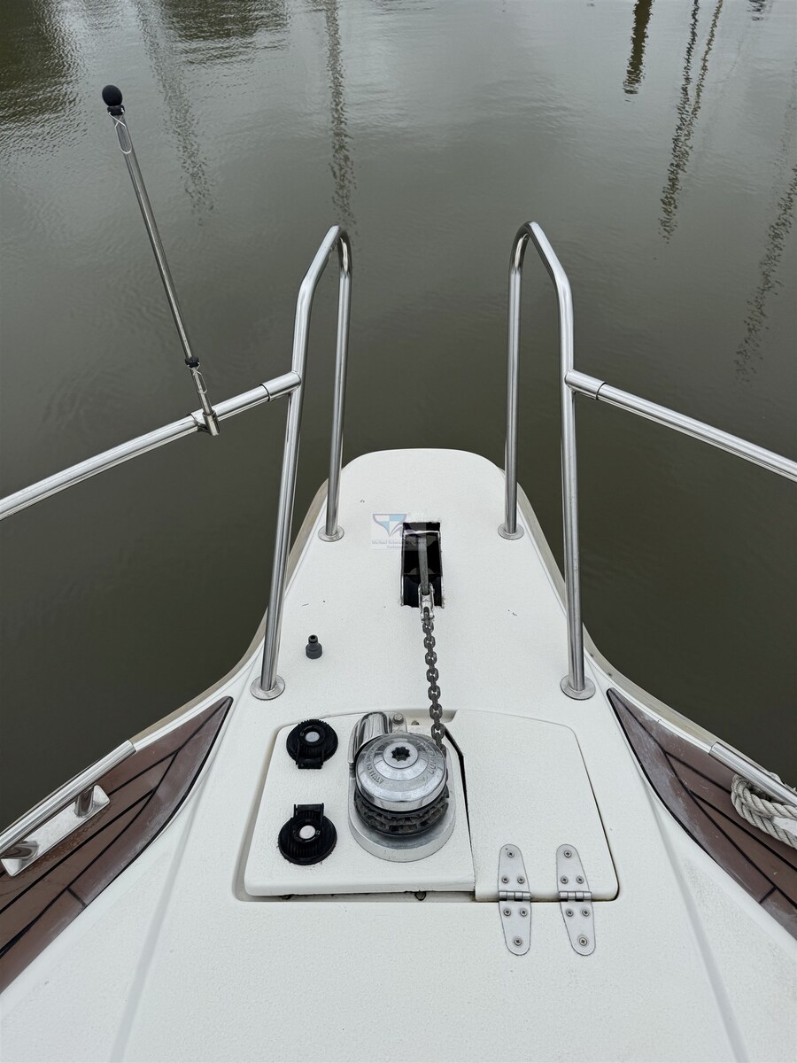 Motor Alarm, Anker (mit 30m Kette), Waterdruk systeem, Automatische trim (Lenco 230 x 610 mit Mente Steuerung (Neu 2023)), 5 Accu's (3x Marine Power 12V/108Ah, 1x 53Ah, 1x 110Ah), Buitendouche, Hekschroef (mit Betriebsbatterie), Verstelbaar zoeklicht, Hardtop, Brandblussysteem, Zonnepanelen (VOTRONIC), Platform, Automatische bilgepomp, Handmatige bilgepomp, Ingangsdeur, Teak in kuip, Walaansluiting 230V, Walaansluiting voor water, City-/Water-connection, Elektrische ankerlier, Handmatige ankerlier, Zwemtrap, Kuiptafel, Opklapbare salontafel (drehbar und absenkbar), Zeereling met opening, Hoorn.