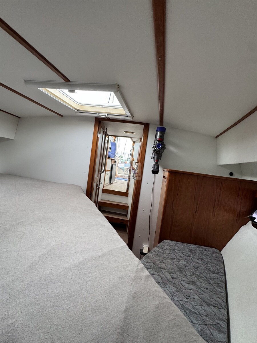 Met boeg- en hekschroef, elektrische ankerlier, Eberspächer kachel, automatische trimklep en elektrisch schuifdak.