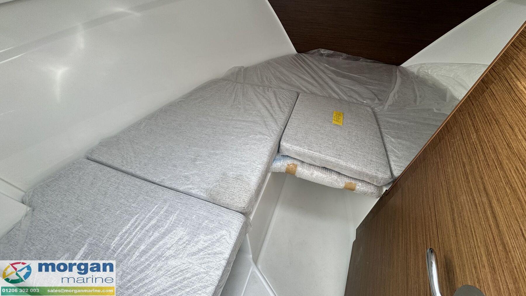 Machinery: Honda BF150 outboard engine with power trim and tilt. Engine lasted serviced in August 2025. Hydraulic steering. Bow thruster. Manual and electric bilge pumps. Fuel capacity: 170L - with outside fill. Water capacity: 50L.