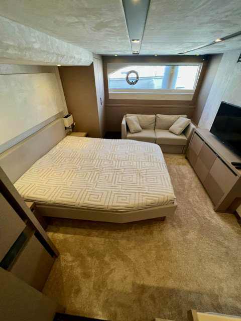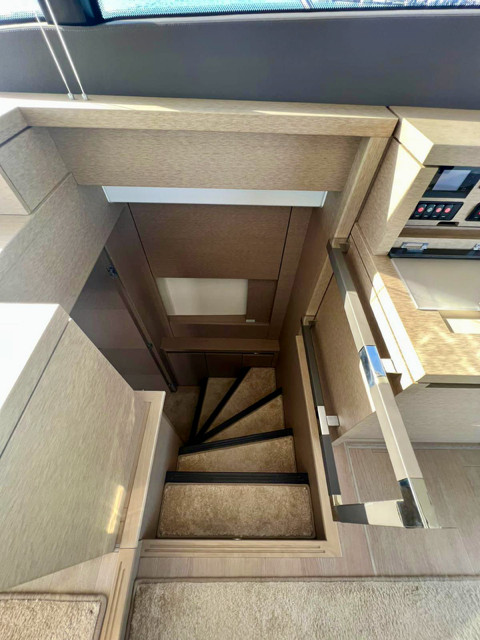 Impulsado por dos motores VOLVO D11 IPS-950 de 725 CV con solo 600 horas de navegación, este yate está listo para ofrecerte un rendimiento y confiabilidad excepcionales.