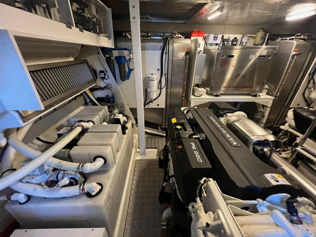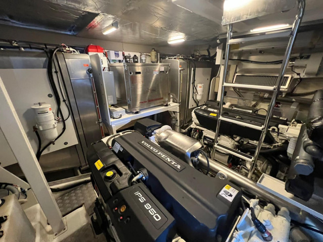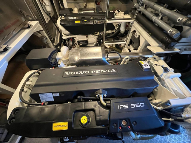 Propulsé par deux moteurs VOLVO D 11 IPS-950 de 725 CV ayant seulement 600 heures de navigation, ce yacht est prêt à vous offrir des performances et une fiabilité exceptionnelle.