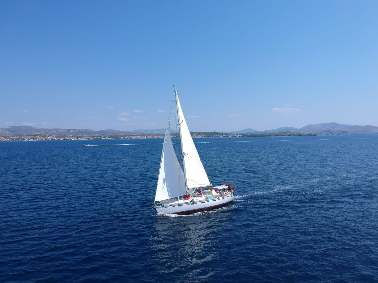 Anker (+ 80 m 10mm chain/Kette/catena), Waterdruk systeem, Buitendouche, Stalling bok, Stootwillen, Handmatige bilgepomp, Zeewaterpomp, Walaansluiting 230V, Elektrische ankerlier, Zwemtrap, Kuiptafel, Bijboot.