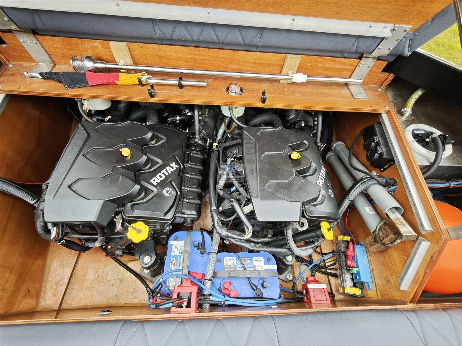 Unique piece of jewellery with an eye-catching guarantee! 2 x 277 hp jet engines with only 0.40 m draught! Complete with stainless steel trailer! High-quality special leather interior as good as new from 2023!