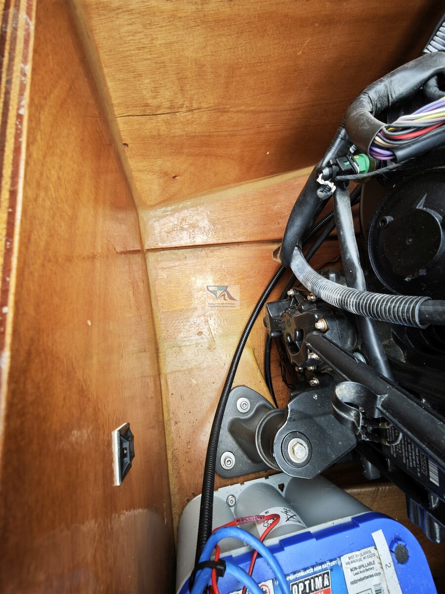 Trim hydraulique, 2 Batteries (2 x 60 AH), Câble d’alimentation à quai, Pont en teck, Prise de quai.