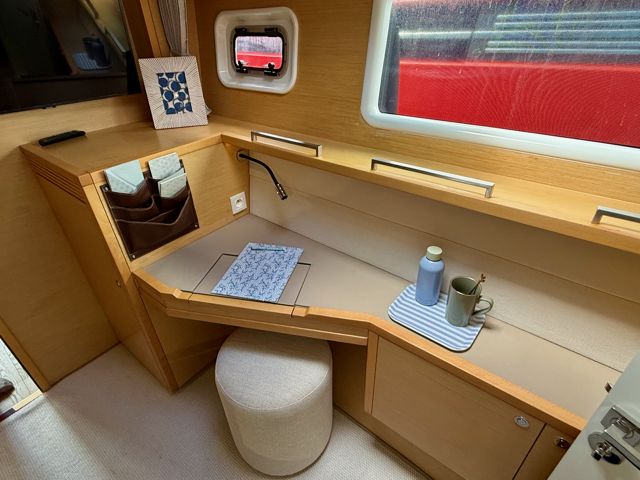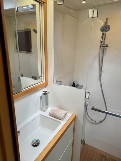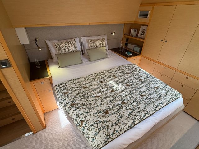 • Grande cabine propriétaire avec salle de bain à l’arrière tribord (avec accès direct au cockpit arrière)