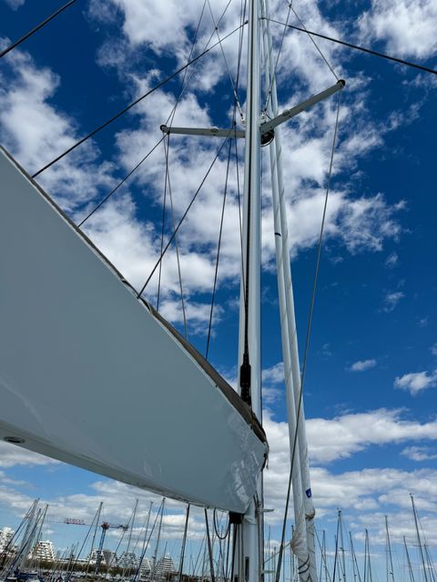 • 4 cabines - 4 salles de bain + cabine marin en pointe avant BB ! Equipée avec 1 lit, évier, toilette et douche.