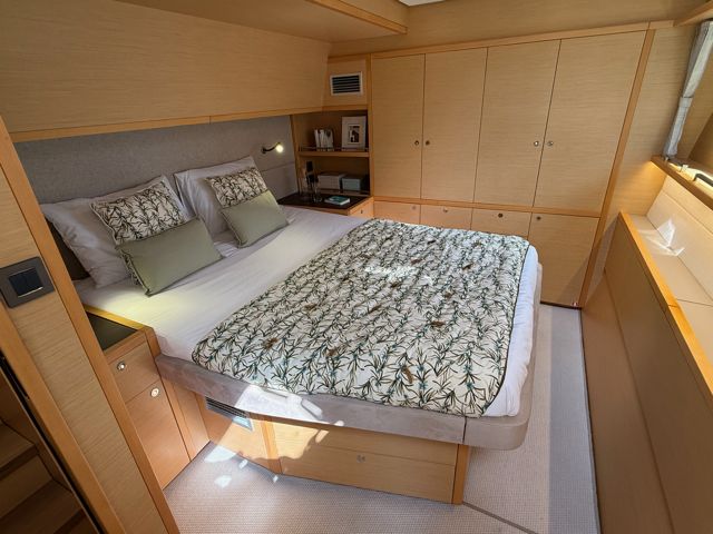 • Large owner’s cabin with an ensuite bathroom at the starboard aft (direct access to the aft cockpit)