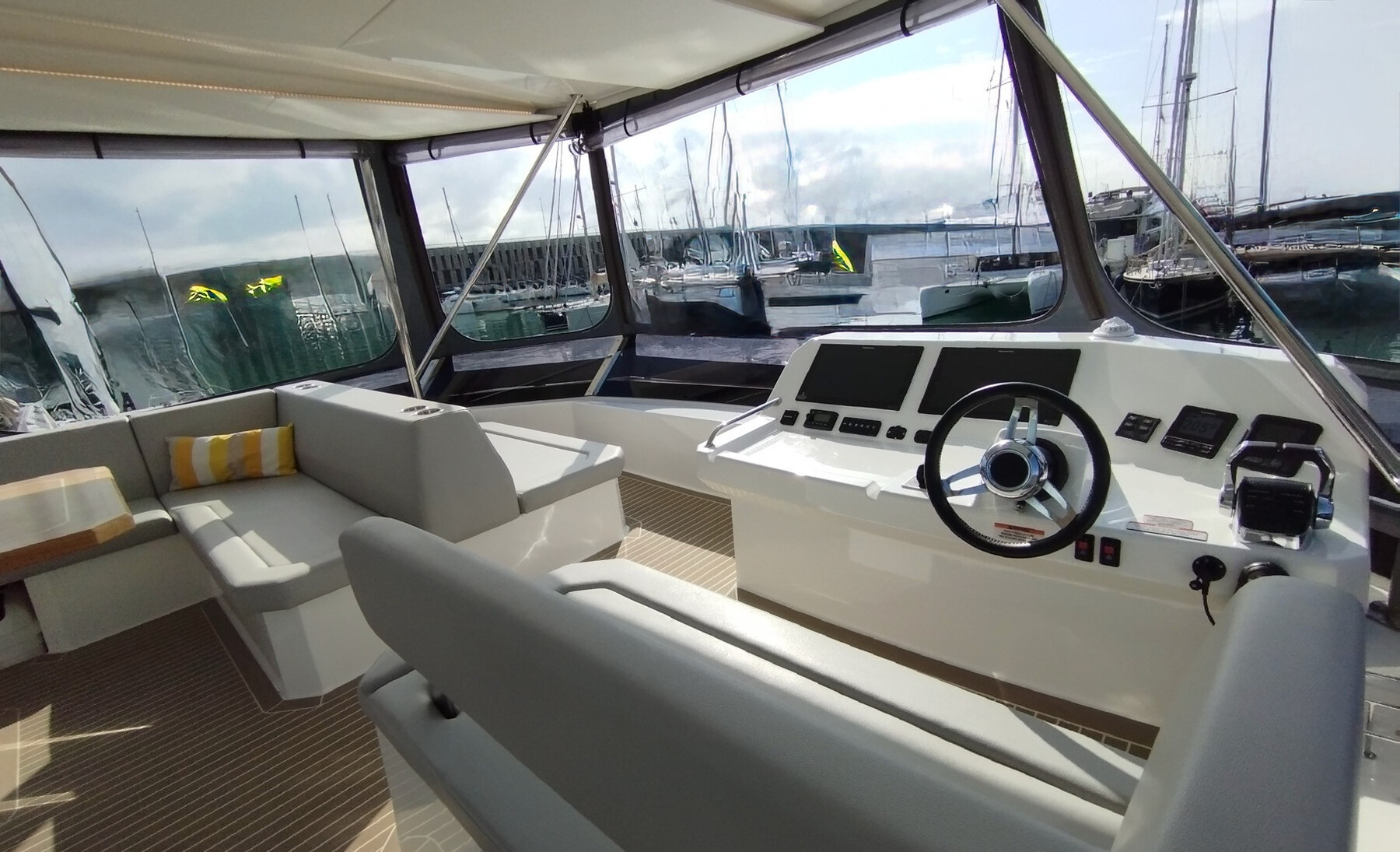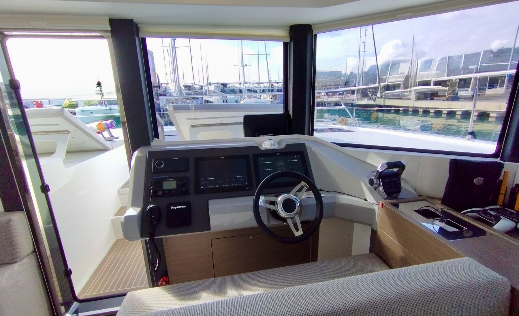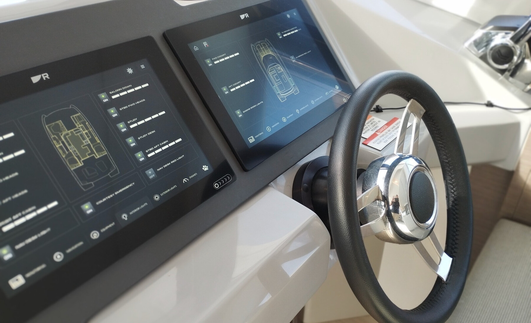 En matière de navigation et électronique il est équipé d’un système stéréo avec connectivité WiFi et Bluetooth des écrans Raymarine AXIOM XL16 et AXIOM12 un radar Doppler quantique pour la prévention des collisions et des caméras de vision arrière et avant avec réalité augmentée