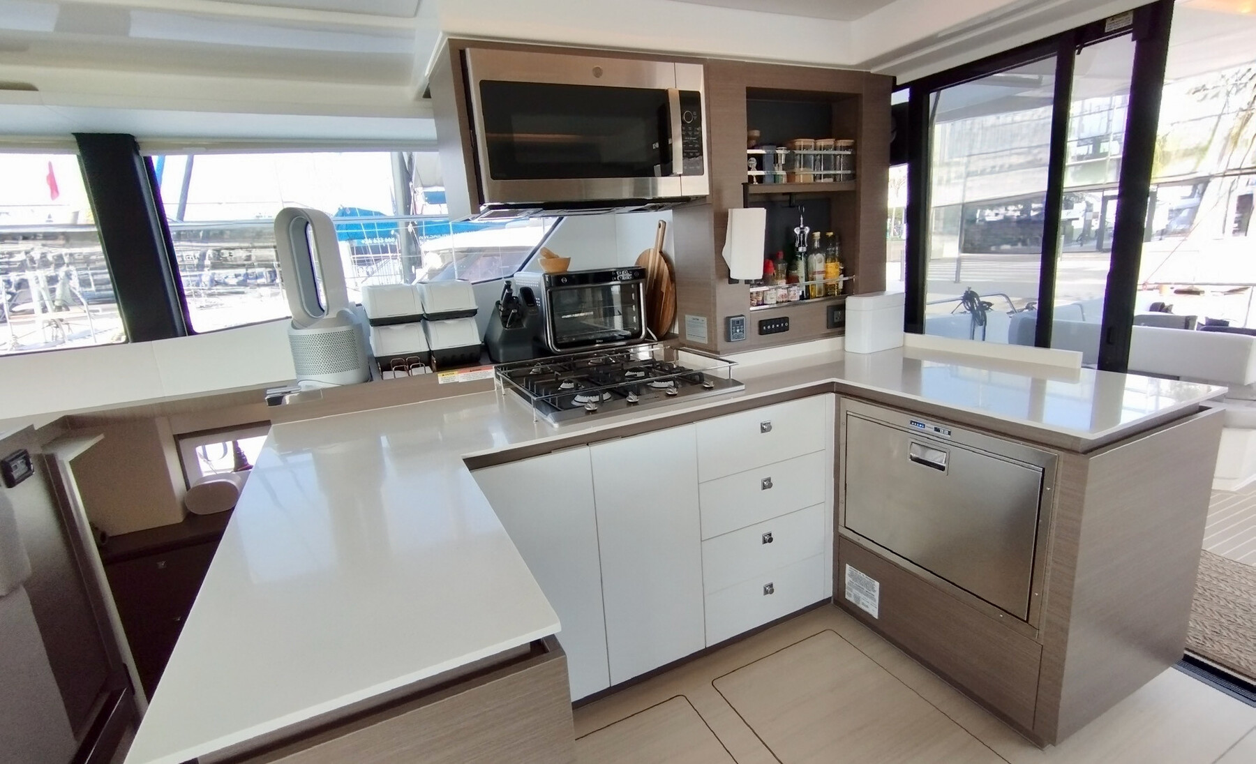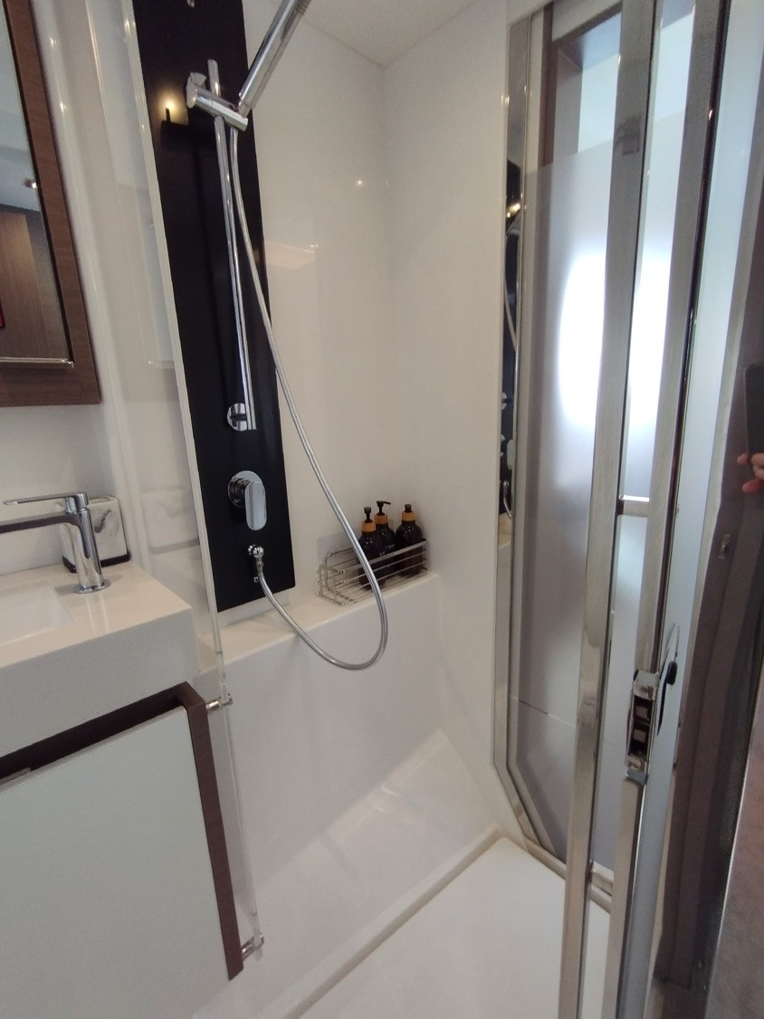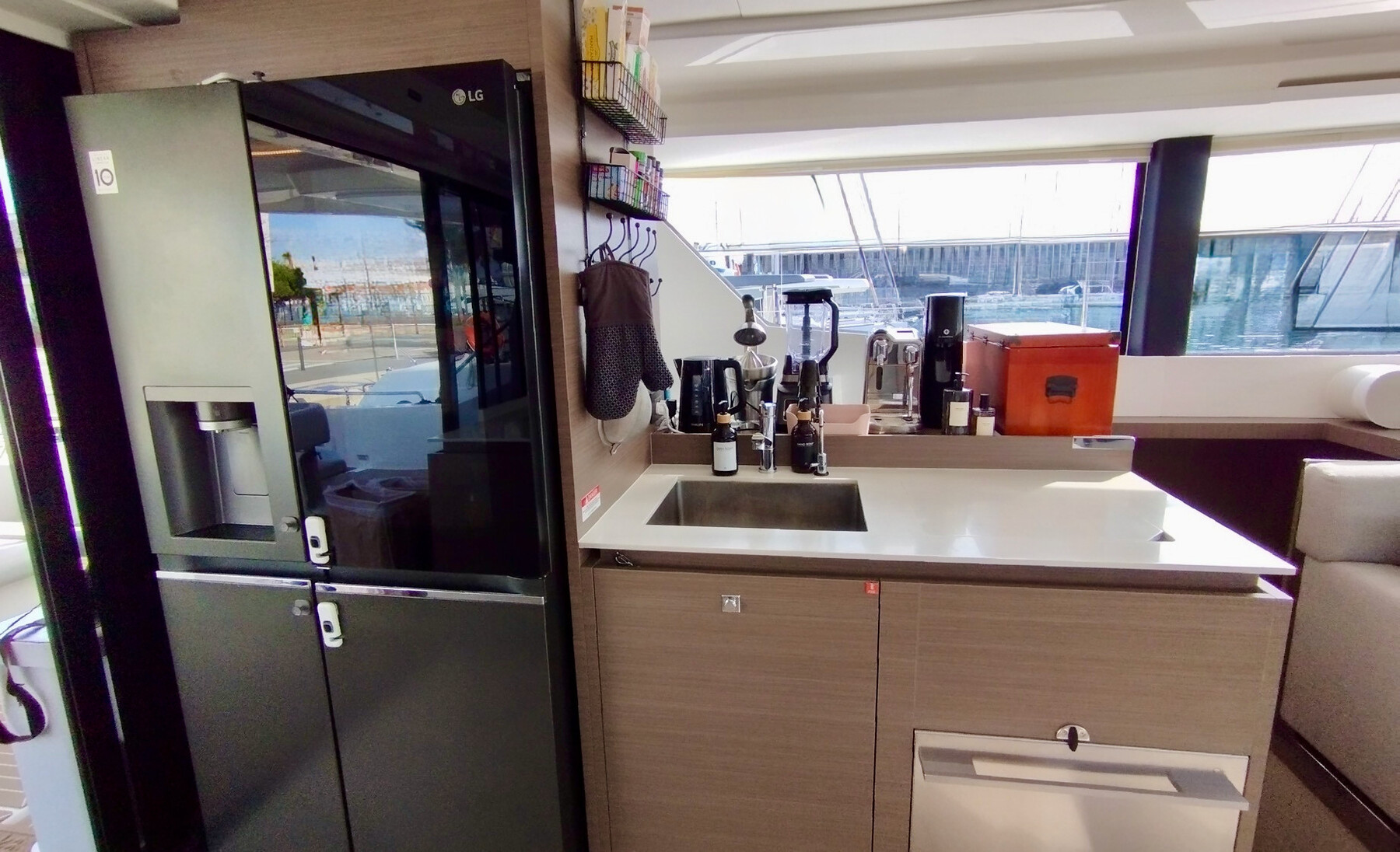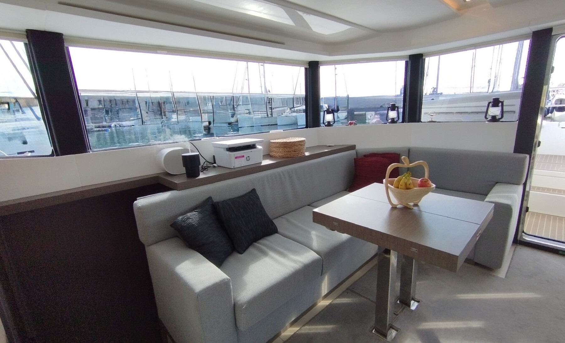 Il dispose de 3 cabines spacieuses avec des lits queen-size et 3 salles de bains équipées de toilettes électriques à chasse d’eau avec eau de mer Le design intérieur se distingue par un ensemble de tissus d’ameublement de haute qualité des tapis dans les cabines et le salon un éclairage LED bleu de courtoisie et des téléviseurs LG Oled dans le salon et les cabines secondaires