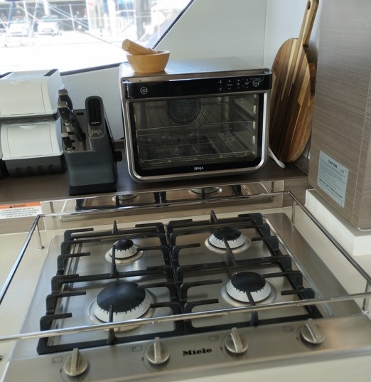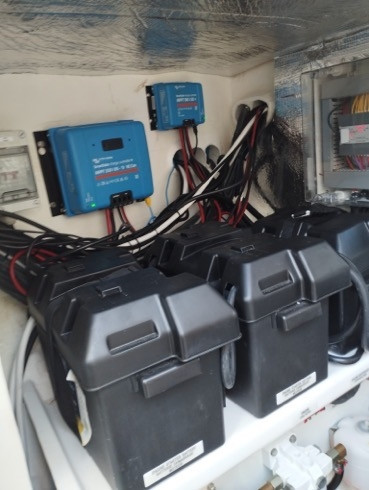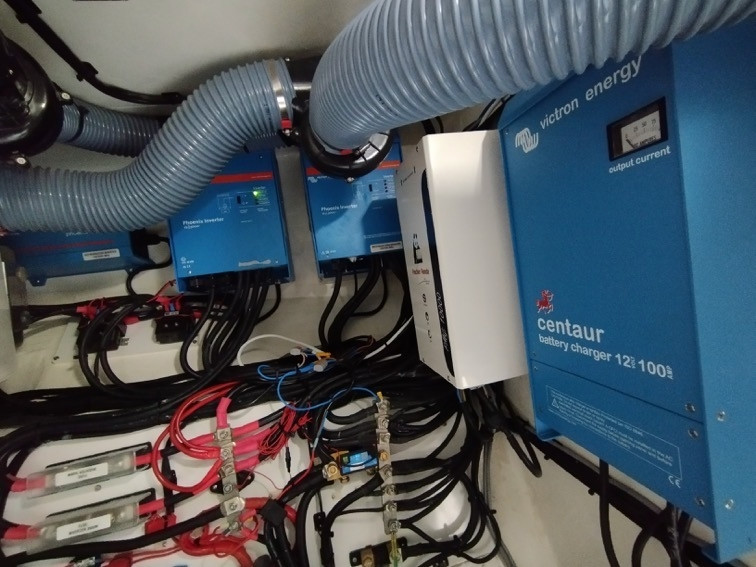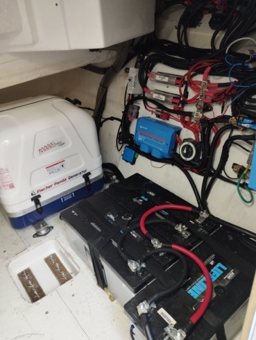 Concernant l’électricité il dispose de 6 panneaux solaires de 540W avec régulateurs Victron un générateur Fischer Panda silencieux de 10 kVA et une climatisation Frigomar de 70000 BTU/h