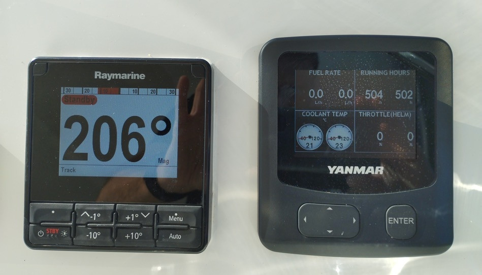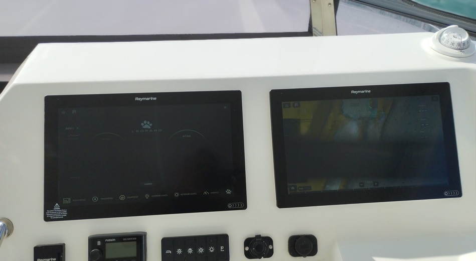 En navegación y electrónica está equipado con un sistema estéreo con conectividad WiFi y Bluetooth pantallas Raymarine AXIOM XL16 y AXIOM12 radar Doppler cuántico para prevención de colisiones y cámaras de visión trasera y delantera con realidad aumentada