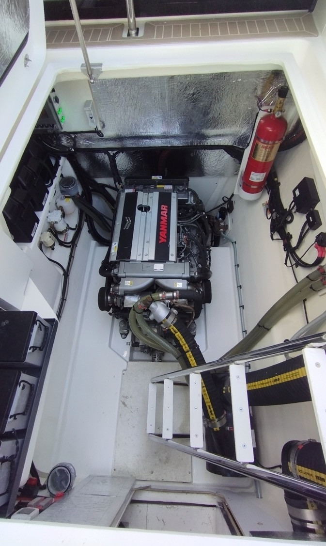POWERCAT Leopard 53 de 2024 sous pavillon britannique avec TVA acquittée Il est équipé de deux moteurs Yanmar 370 HP (8LV370) avec 502 heures de fonctionnement et 8 cylindres