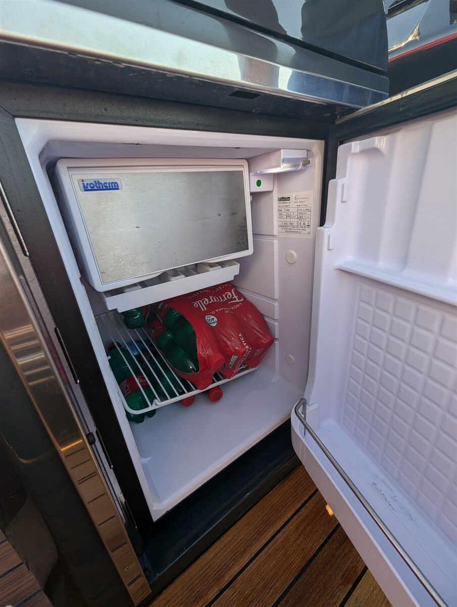 Motor Alarm, Anker (acciaio inox Kg 7,5), Waterdruk systeem, 2 Accu's, Teak op gangboorden, Buitendouche, Sfeerverlichting, Platform, Teak in kuip, Walaansluiting 230V, Elektrische ankerlier, Zwemtrap, Hoorn.
